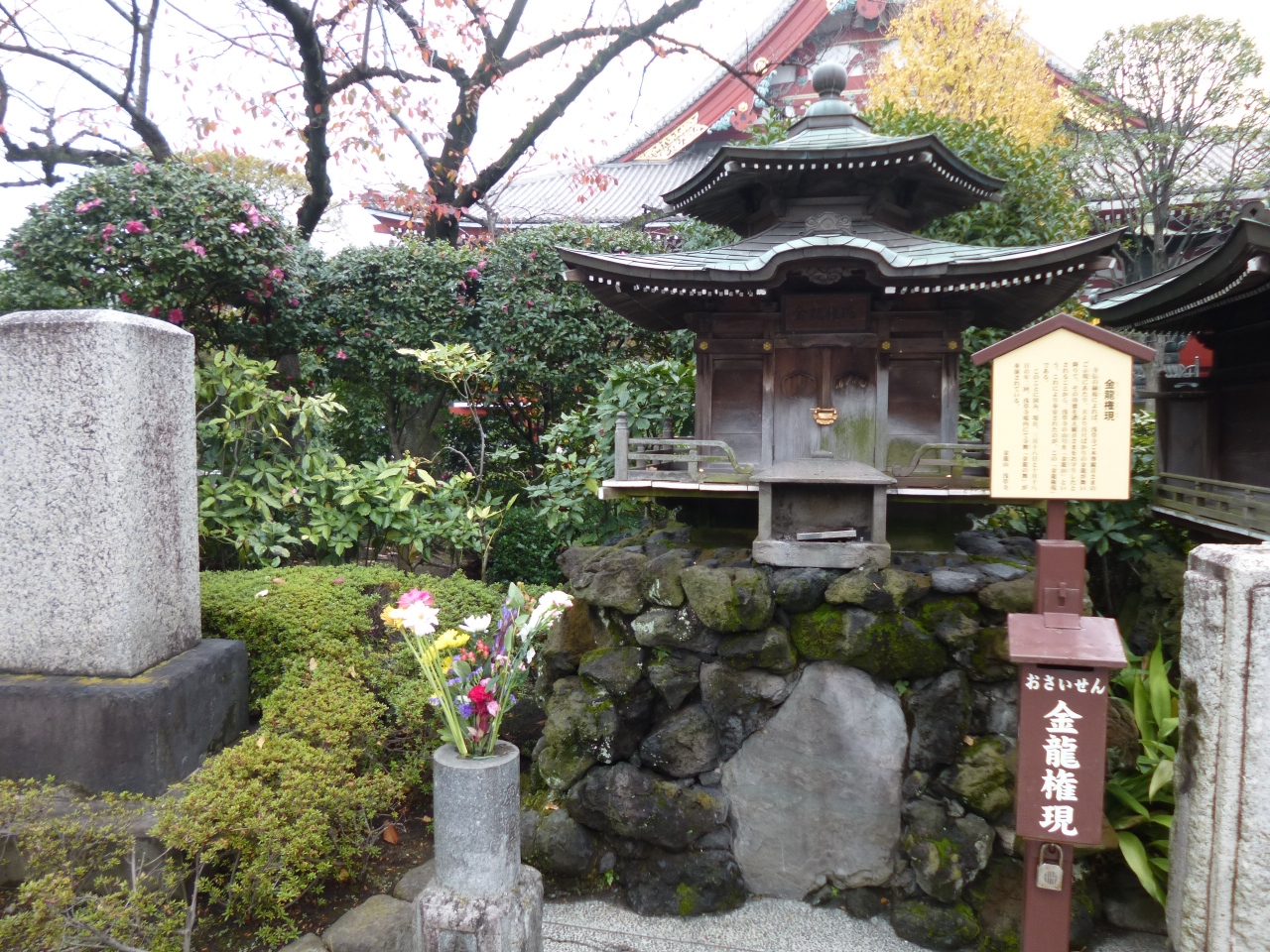 都内最古の寺で、本尊は聖観音菩薩です。元は天台宗に属していましたが第二次世界大戦後独立し、聖観音宗の総本山となりました。観音菩薩を本尊とすることから「浅草観音」や「浅草の観音様」の呼び名で、あらゆる階層から広く親しまれ、年間約三千万人もの参詣者が訪れて民衆信仰の中心地となっています。雷門の大提灯、仲見世が江戸情緒を伝えています。浅草名所七福神(大黒天)