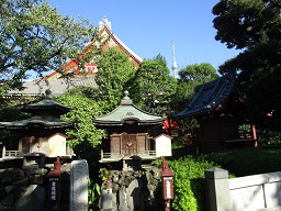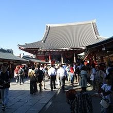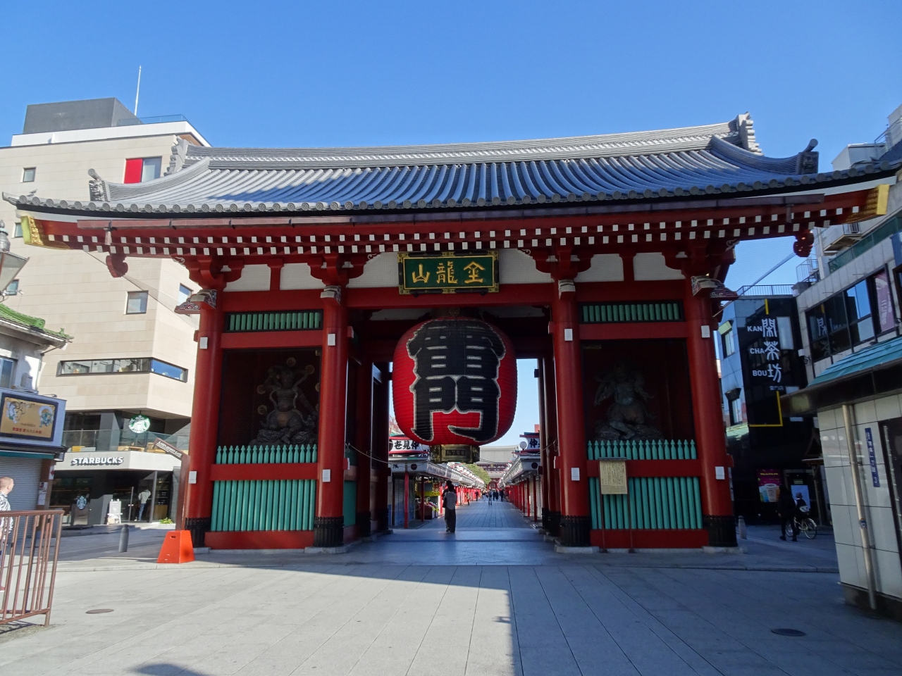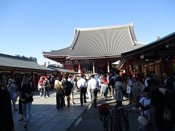 都内最古の寺で、本尊は聖観音菩薩です。元は天台宗に属していましたが第二次世界大戦後独立し、聖観音宗の総本山となりました。観音菩薩を本尊とすることから「浅草観音」や「浅草の観音様」の呼び名で、あらゆる階層から広く親しまれ、年間約三千万人もの参詣者が訪れて民衆信仰の中心地となっています。雷門の大提灯、仲見世が江戸情緒を伝えています。浅草名所七福神(大黒天)