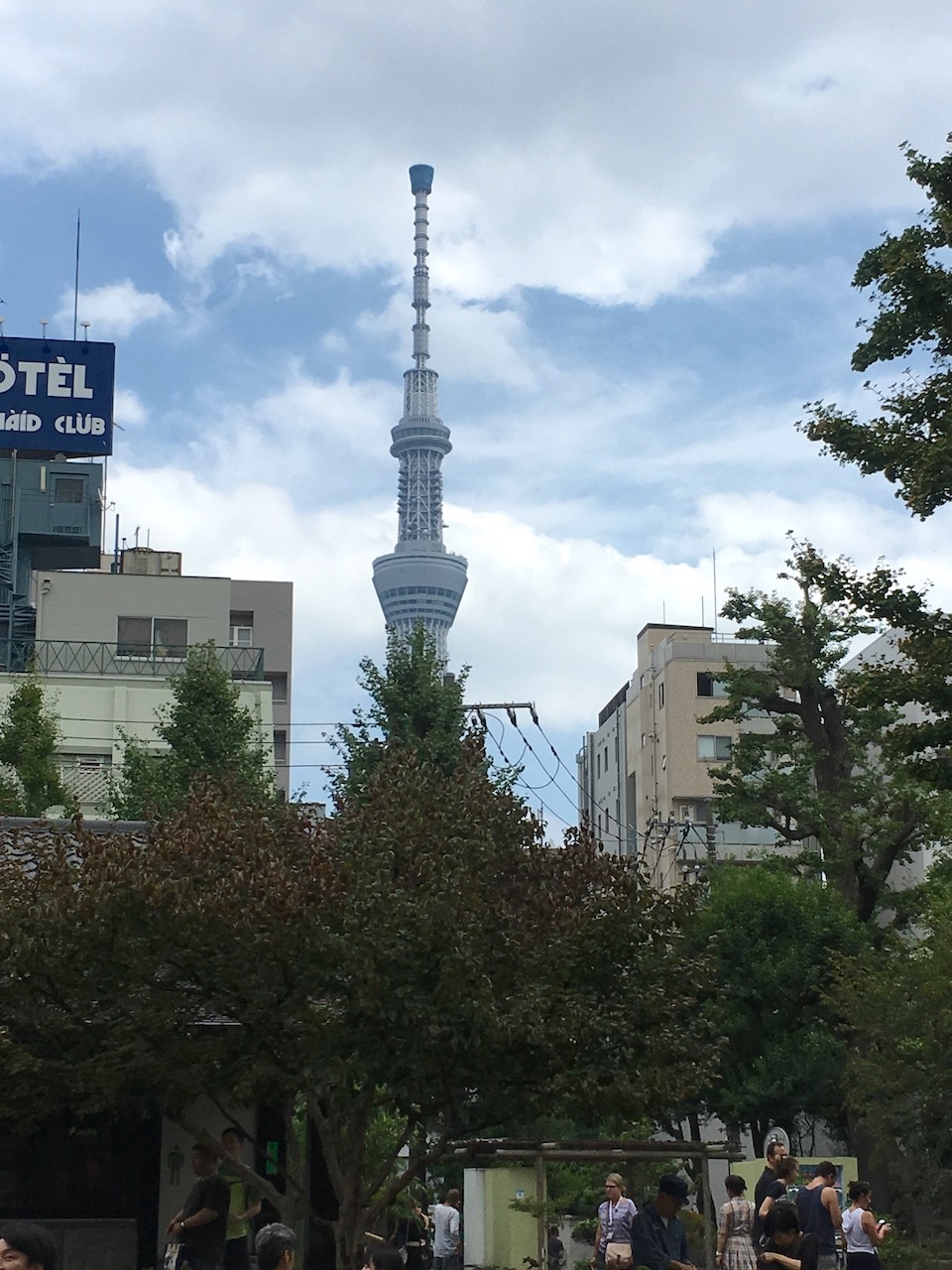 スカイツリーが見える境内