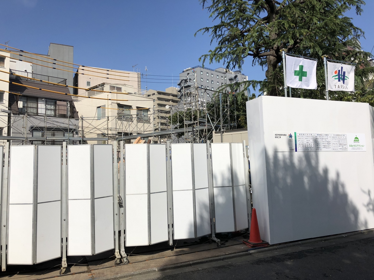 はとバス駐車場わきの地蔵尊、現在工事中です