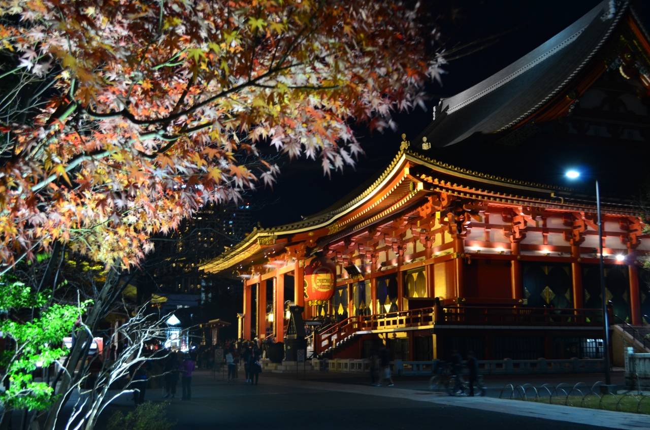 都内最古の寺で、本尊は聖観音菩薩です。元は天台宗に属していましたが第二次世界大戦後独立し、聖観音宗の総本山となりました。観音菩薩を本尊とすることから「浅草観音」や「浅草の観音様」の呼び名で、あらゆる階層から広く親しまれ、年間約三千万人もの参詣者が訪れて民衆信仰の中心地となっています。雷門の大提灯、仲見世が江戸情緒を伝えています。浅草名所七福神(大黒天)