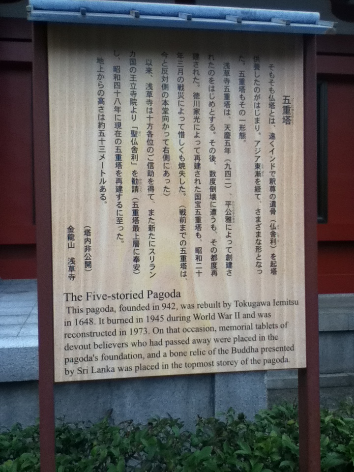 浅草寺本堂の左手にこちらの印塔がある。数人が見ていた。お勧めの点は、一般的に宝篋印塔は宝篋印陀羅尼という呪文を収めた塔であ... 続きを読むること、こちらの宝篋印塔は宝暦11年、多くの信徒の助力によって建立されたものであること、宝篋印塔の形状は江戸時代中期以降に流行した、笠部を屋蓋形としたもので、総高7m以上、塔高5m以上と大きいこと、本塔の制作者、西村和泉守藤原政時は鋳物師で江戸時代前期から大正時代まで11代にわたって活躍したこと、安政2年(1855)の震災で被災したが、再建されたこと、この宝篋印塔は作りが精巧であり、また区内で現存する銅造宝篋印塔の中でも最大のもので近世中期の鋳物師の活動や鋳造技術を知る上でも貴重な遺品であることから特に仏塔や近世の鋳物に関心のある人にとっては訪問する価値があることである。 閉じる