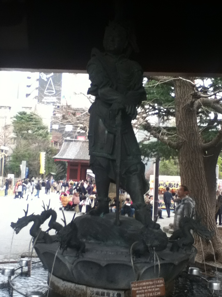 都内最古の寺で、本尊は聖観音菩薩です。元は天台宗に属していましたが第二次世界大戦後独立し、聖観音宗の総本山となりました。観音菩薩を本尊とすることから「浅草観音」や「浅草の観音様」の呼び名で、あらゆる階層から広く親しまれ、年間約三千万人もの参詣者が訪れて民衆信仰の中心地となっています。雷門の大提灯、仲見世が江戸情緒を伝えています。浅草名所七福神(大黒天)