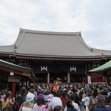 浅草寺の本堂左手、細やかな装飾が見事でした