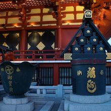 目を見張るような大きさの天水桶がいくつも並んでいます