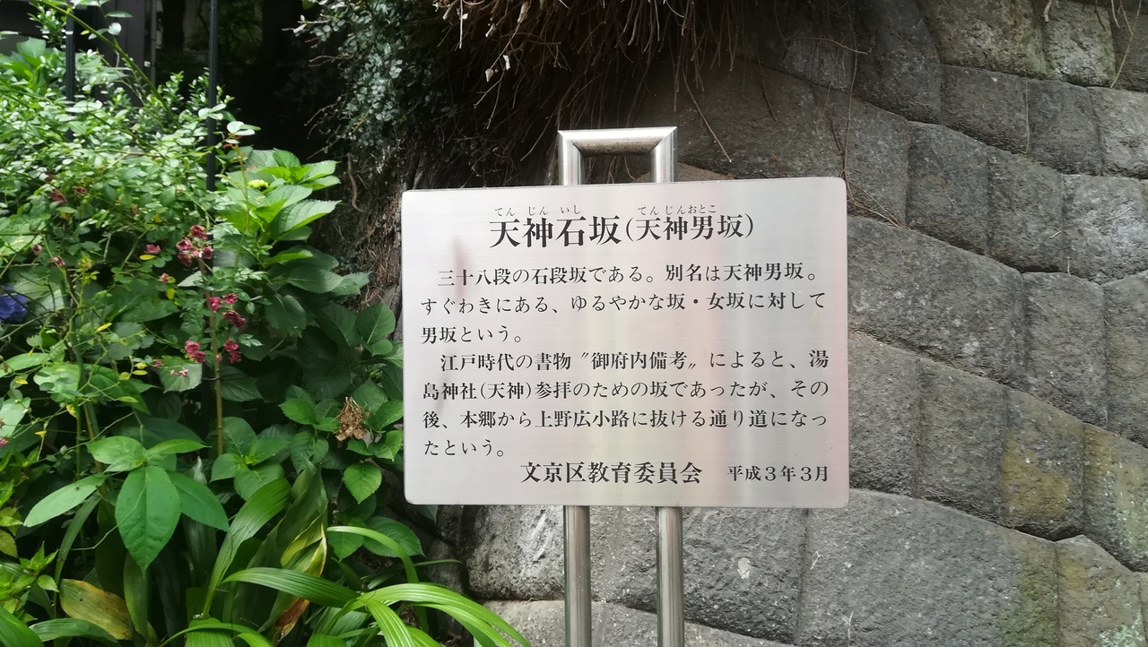 泉鏡花の「婦系図」で知られる。梅園があり観梅者も多い。通称湯島天神の名で学問の神様として親しまれている。 徳川家康公が江戸城に入るに及び、特に崇敬すること篤く、翌十九年十一月豊島郡湯島郷に朱印地を寄進し、もって祭祀の料にあて、泰平永き世が続き、文教大いに賑わうようにと菅公の遺風を仰ぎ奉ったのである。 その後、学者・文人の参拝もたえることなく続き、林道春・松永尺五・堀杏庵・僧堯恵・新井白石などの名が見える。将軍徳川綱吉公が湯島聖堂を昌平坂に移すにおよび、この地を久しく文教の中心としていよいよ湯島天満宮を崇敬したのである。