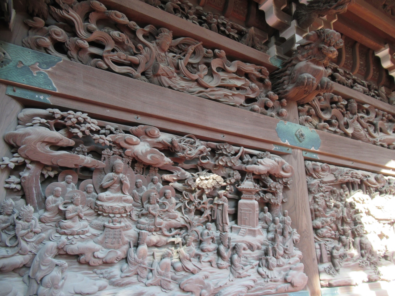 男はつらいよの舞台でも柴又帝釈天に、かなりひさびさに訪れました。参道などは大体の記憶通りだったのですが、びっくりは帝釈天... 続きを読むそのものでした。拝殿に上がりお参りした後、ふと見たら、内殿側がガラスの壁で覆われていたのです。外から見ると、中は通路があり、内殿壁面の彫刻を鑑賞できるようになってました。この彫刻は江戸時代などの古い物ではなく、大正から昭和にかけて制作され、現在は「彫刻ギャラリー」として有料で公開されているとのこと。まあ、管理保存は大変なんだろうし、と思う半面、ちょっとやりすぎかなとも感じました。もう一つ思ったことは、こちらが日蓮宗のお寺だったこと。東京は比較的、多いですが、お参りは「南無妙法蓮華経」だったのね、あらためて思いました。寅さんではそういう場面はなかったですけどね。