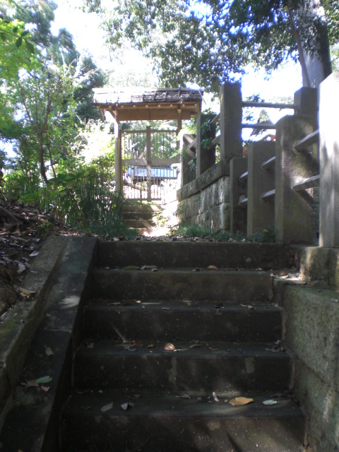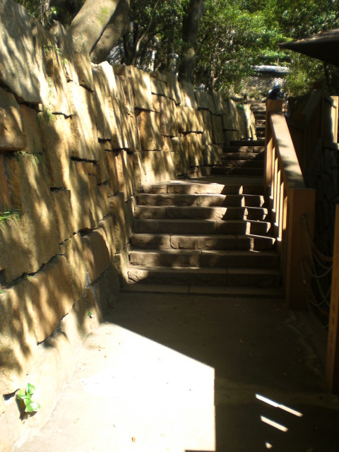 石造りの壁の部分は、地面が斜面となっているため、入口付近を水平にする目的で、南北の階段に高低差を付け、水平な通路を設けてます。