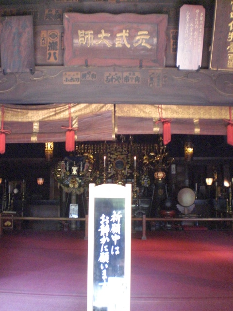 焼失した元三大師堂の内部は、もとは奥一間が仏壇で、その中央に、火災を免れた厨子に、慈恵大師像が安置されていました。現在の天蓋風の場所が、もとの厨子のあった位置です。