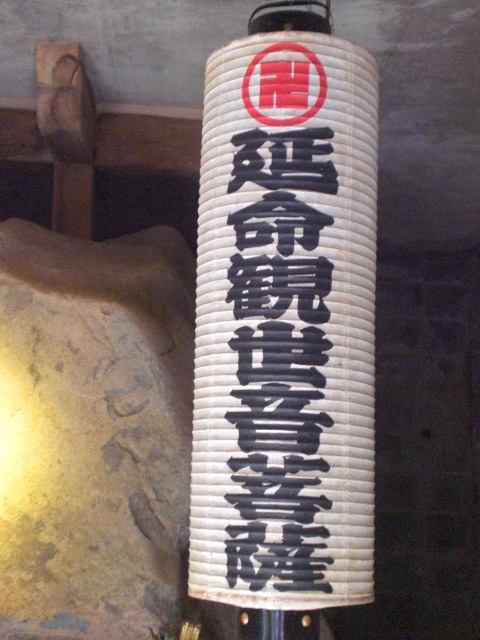 格子戸や階段部の横には、解説や石の標示等が置かれていて、延命観音の由来等が理解できるようになっています。