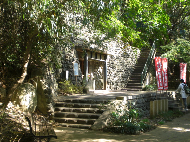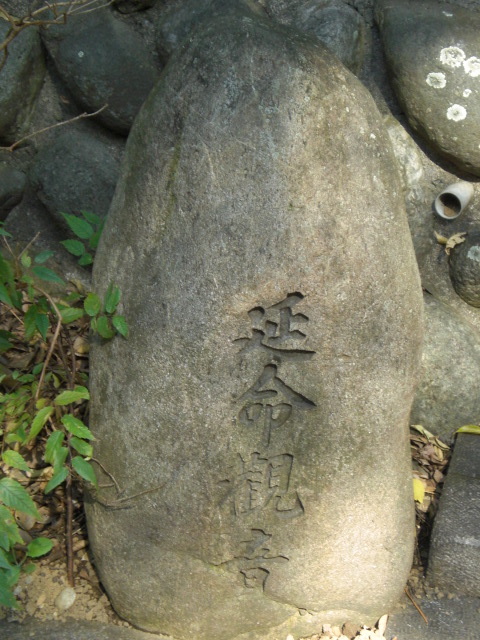 延命観音像は、山の斜面に石造りの壁を造り、壁のほぼ中央に、祠をくりぬき、延命観音像を収納している構造です。