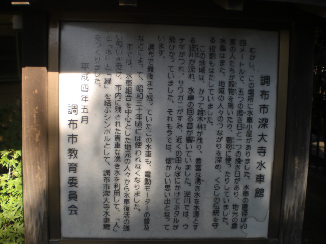 深大寺の深沙堂の近くに、水車館があります。地元の人達がお金を出し合って建設したそうです。
