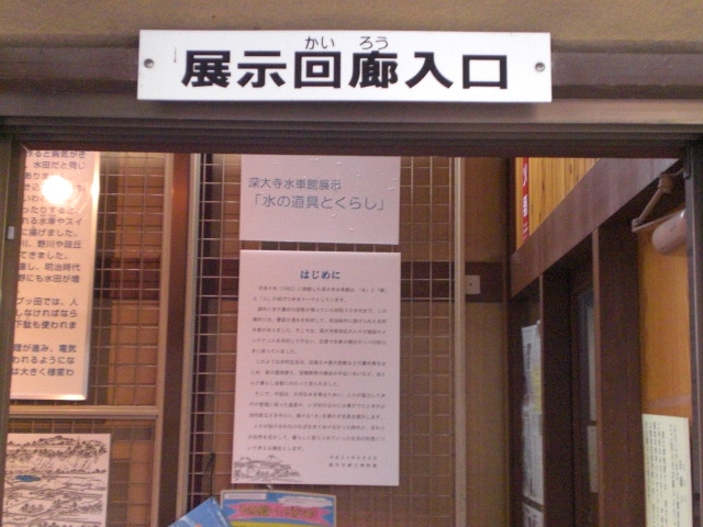 水車館の展示回廊は、まだ水車が村人の食生活に大きな役割を果たしていた太平洋戦争直後までの農村の生活の様子が展示されています。