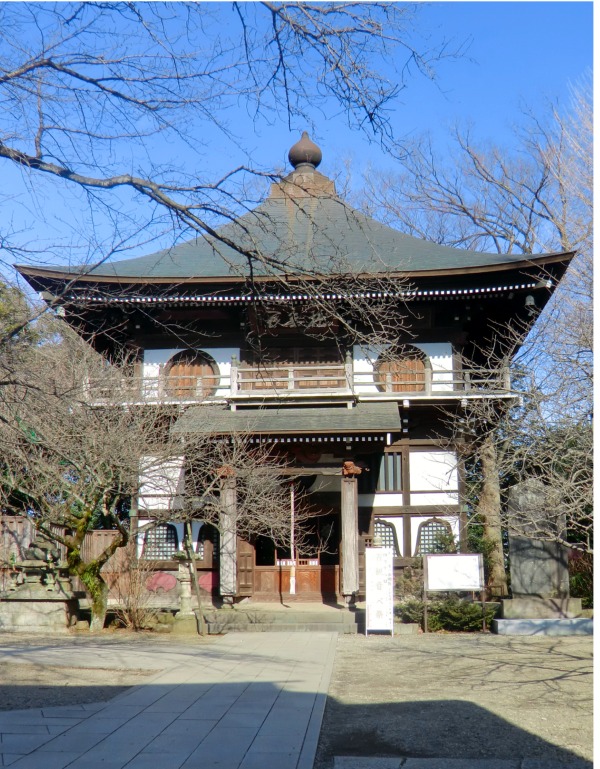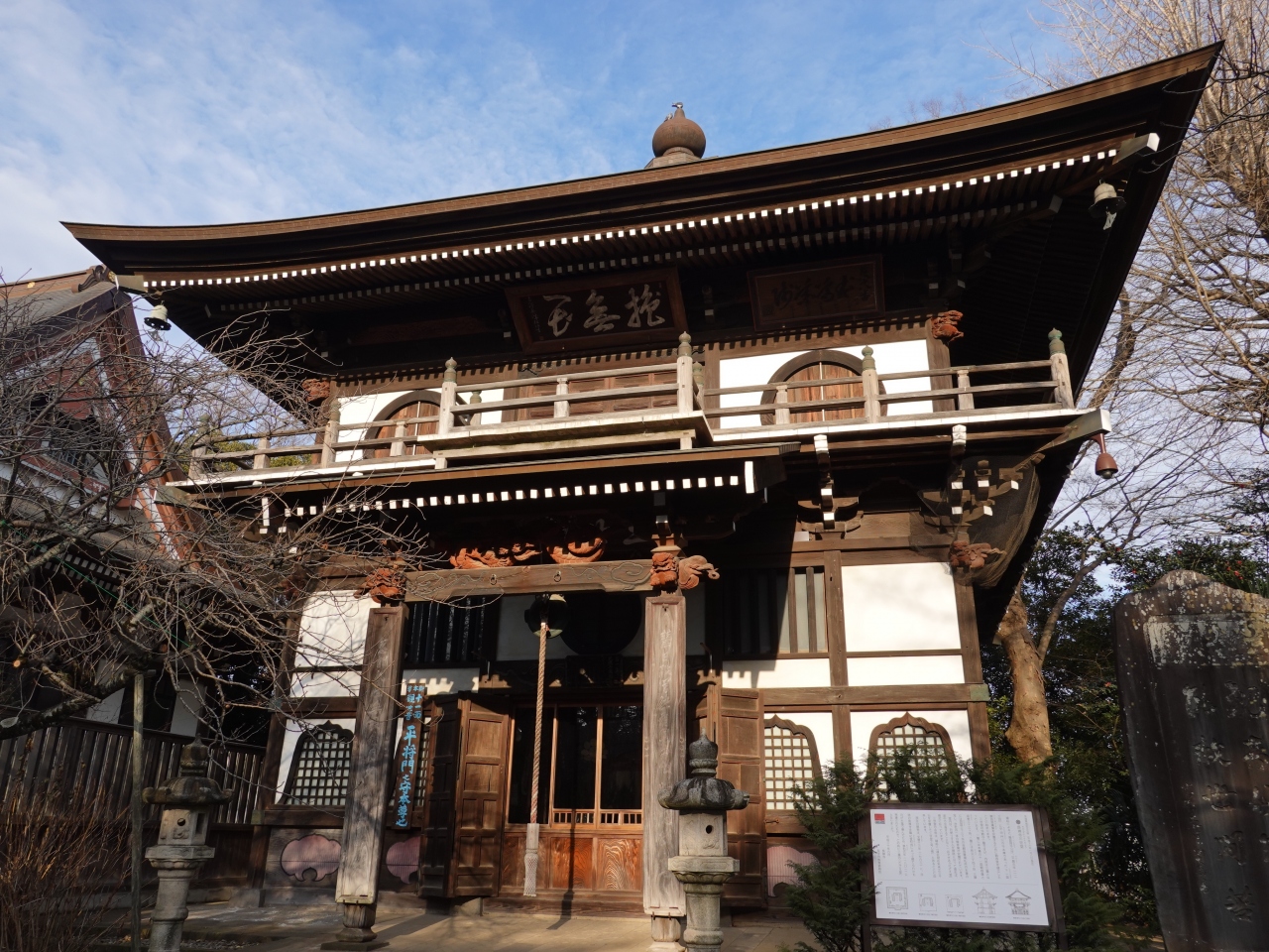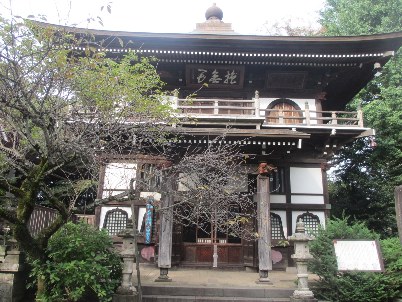 急峻な石段を登ると、山門があります。裕福な寺らしくやや狭い敷地に幾つもの建物を有し、なかでも三世堂という建物は、外観は二層... 続きを読むだが内部は三層になっています。参拝者が交差せずに一巡出来る「さざえ堂」形式になっています。「さざえ堂」としては日本最古の建物だそうです。1763年の建築で指定文化財になっています。山門は二階部分が鐘楼になっていて、比較的新しい建築と見られます。ここからは、利根川が一望できて、風光明媚なところとして、取手八景や茨城百景のひとつにも数えられています。