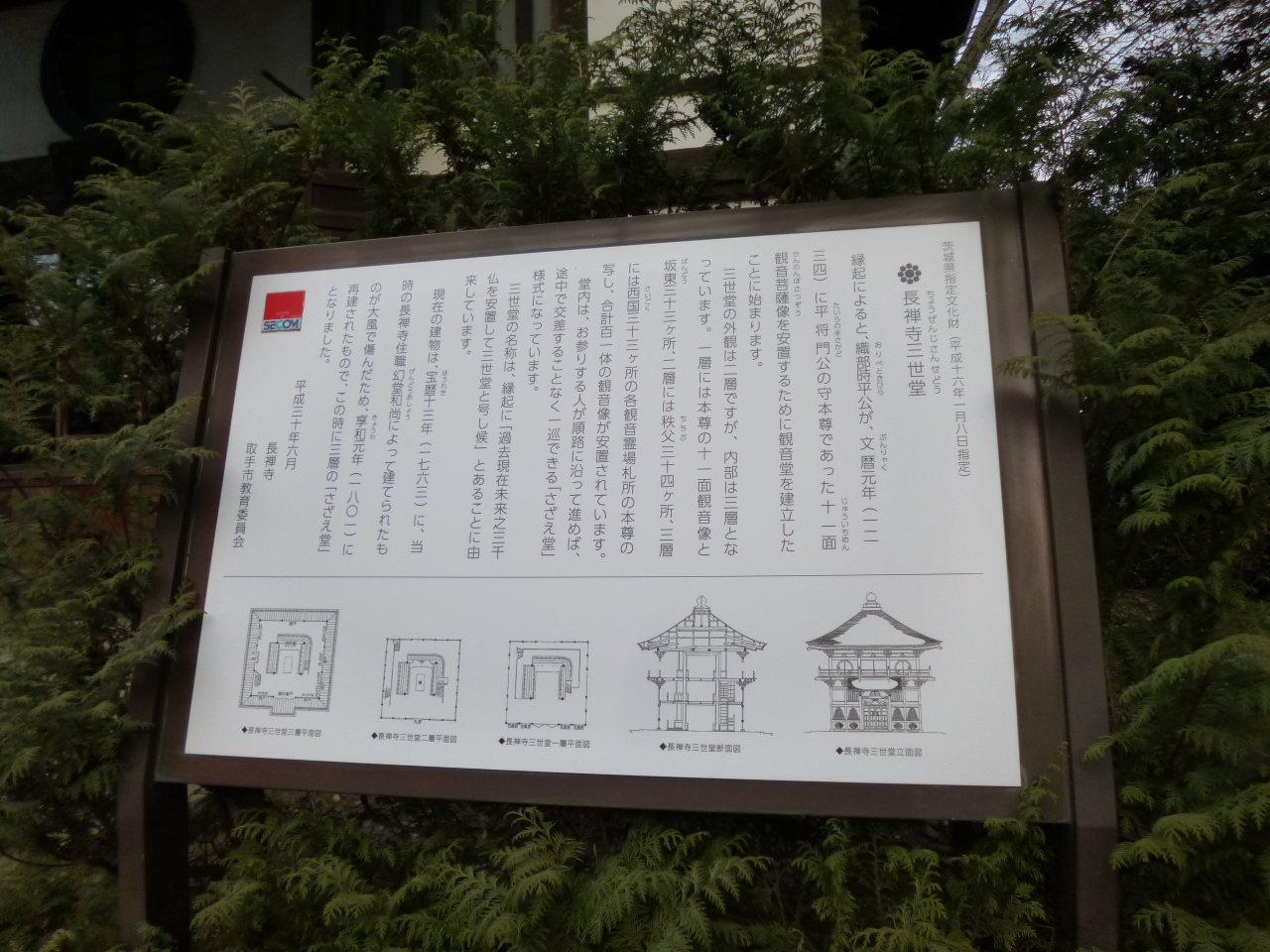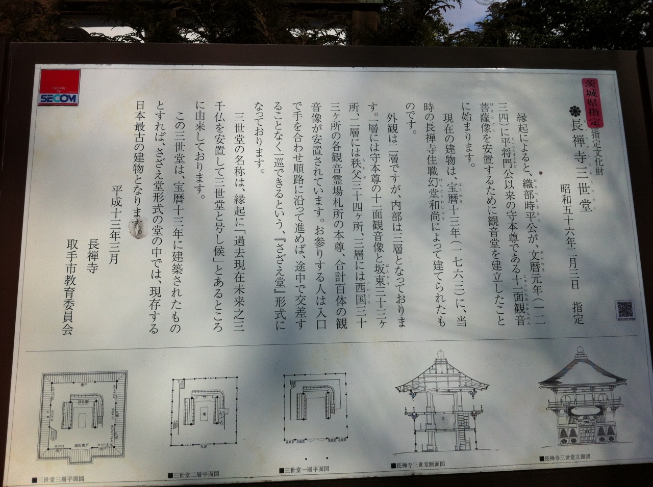 長禅寺にある三世堂は、茨城県指定文化財で、外観は2層ですが内部3層で、「さざえ堂」の形式になっているそうです。