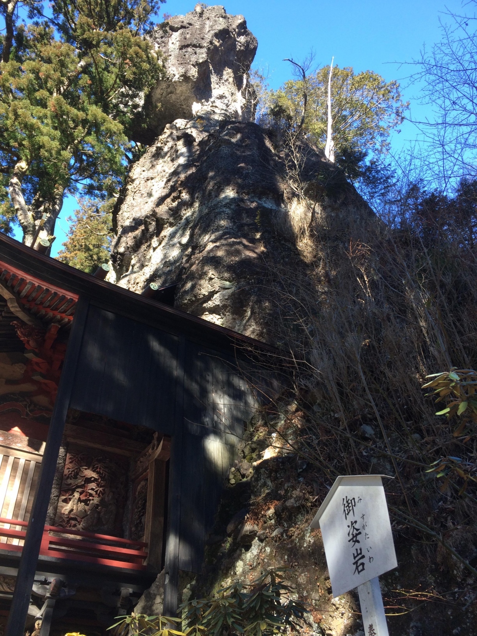 1400余年前、第31代用明天皇の時代に創建されたといわれる古社。本殿は200余年前の文化3年に再建され、御祭神は後方の御姿岩の洞窟の中に祀られています。境内には、戦国時代、武田信玄が箕輪城攻略の際、矢を立て戦勝を祈願した矢立杉(やたてすぎ)をはじめ、文化財・天然記念物が多数点在しています。現在はパワースポットとして若者からお年寄りまで多くの方で賑わっています。