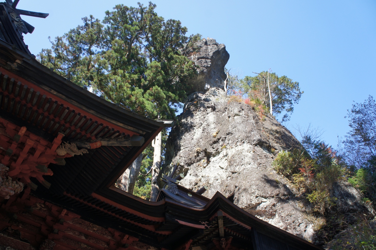 1400余年前、第31代用明天皇の時代に創建されたといわれる古社。本殿は200余年前の文化3年に再建され、御祭神は後方の御姿岩の洞窟の中に祀られています。境内には、戦国時代、武田信玄が箕輪城攻略の際、矢を立て戦勝を祈願した矢立杉(やたてすぎ)をはじめ、文化財・天然記念物が多数点在しています。現在はパワースポットとして若者からお年寄りまで多くの方で賑わっています。