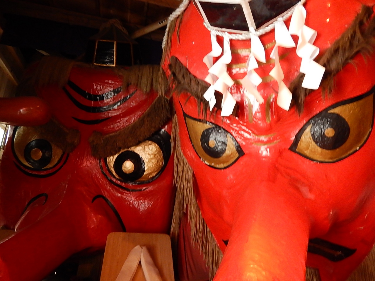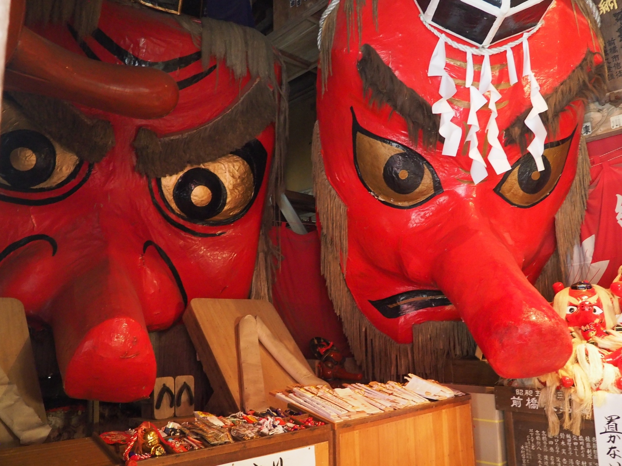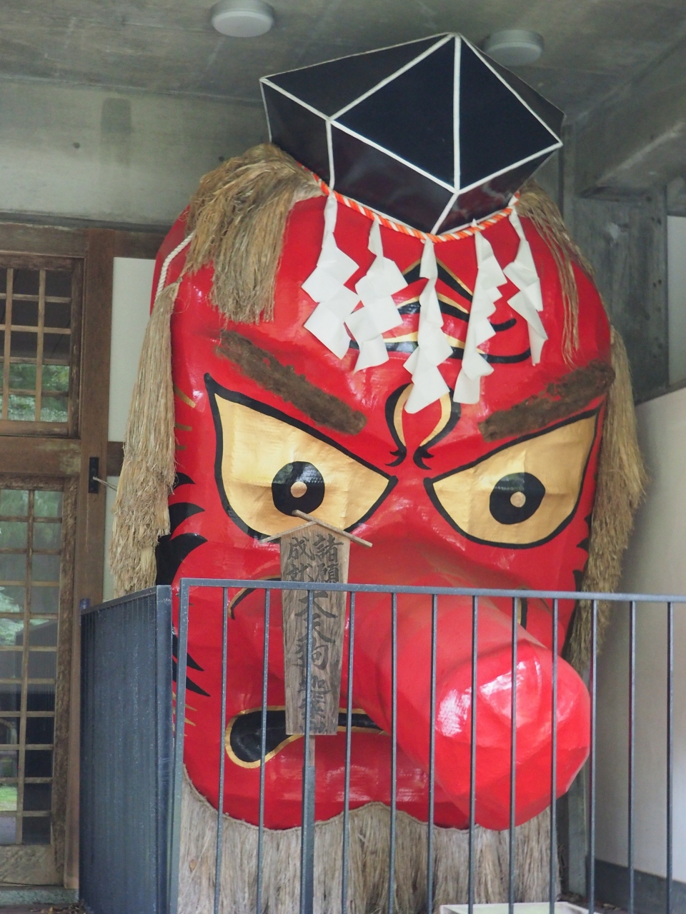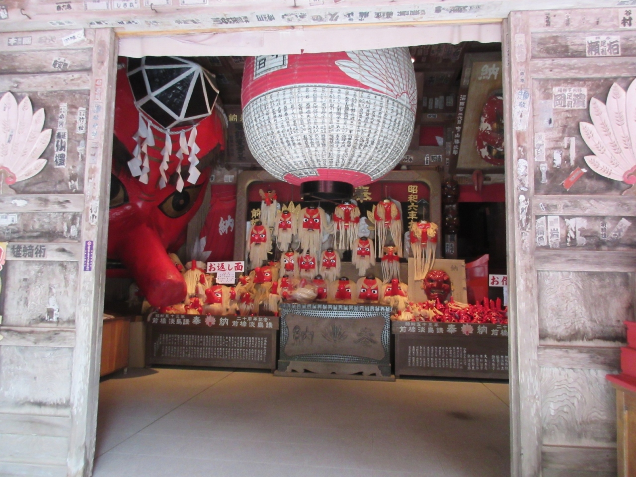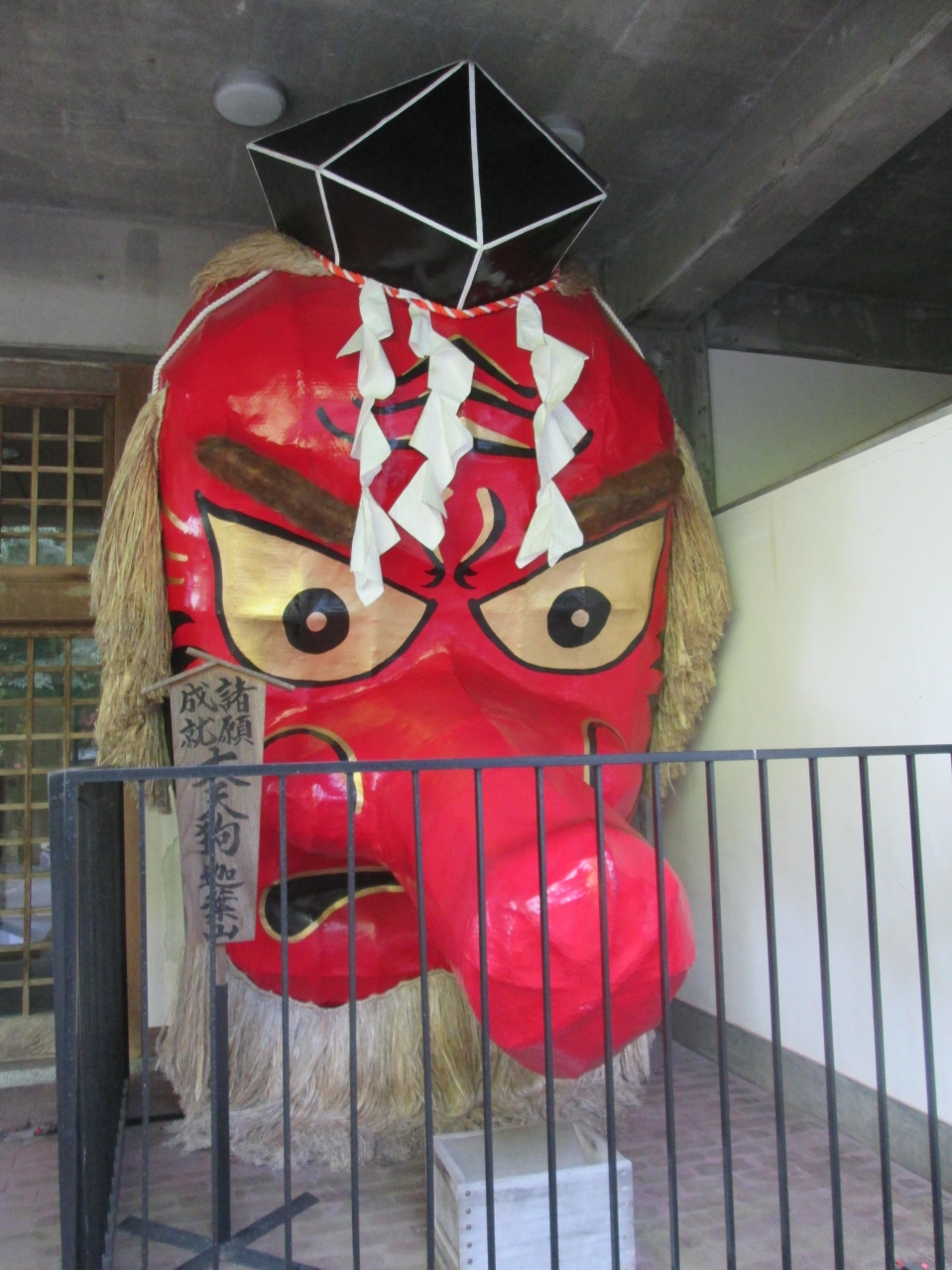 写真に収まらないほど大きな天狗の面