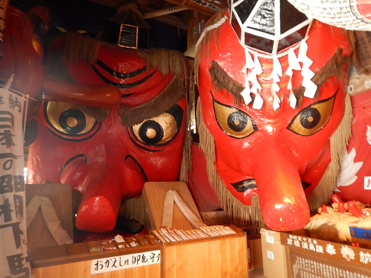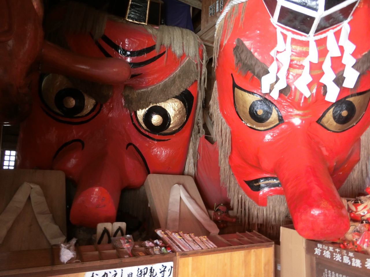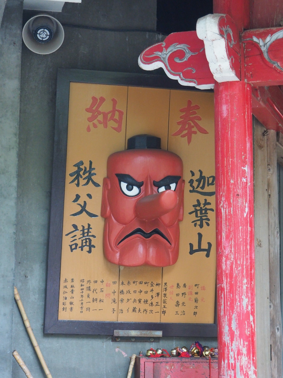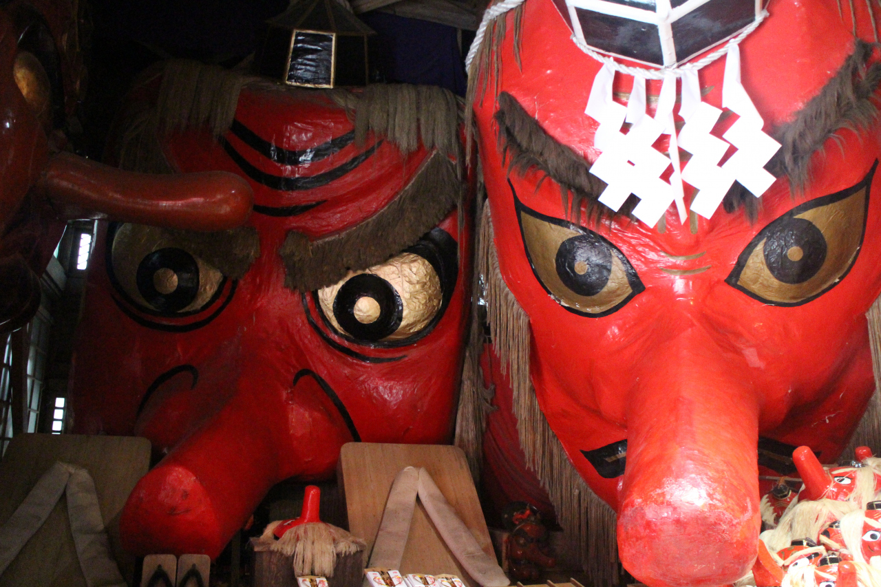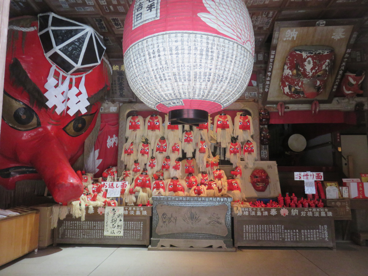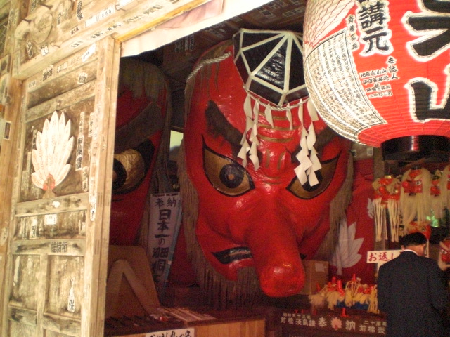 写真に収まらないほど大きな天狗の面