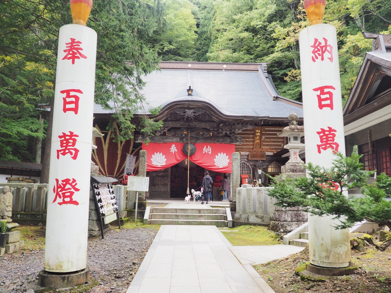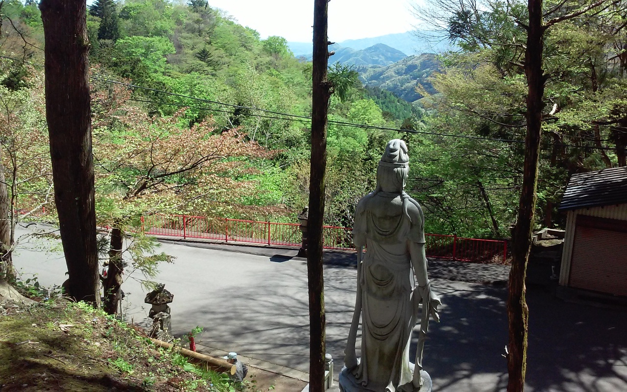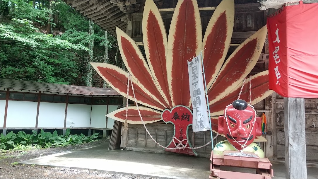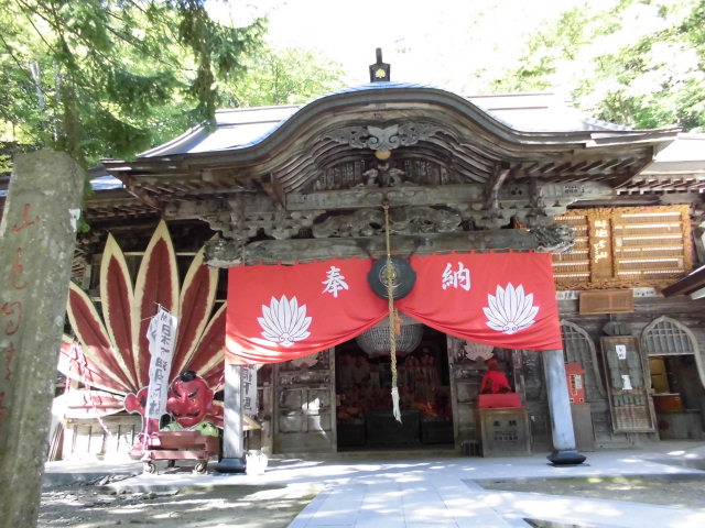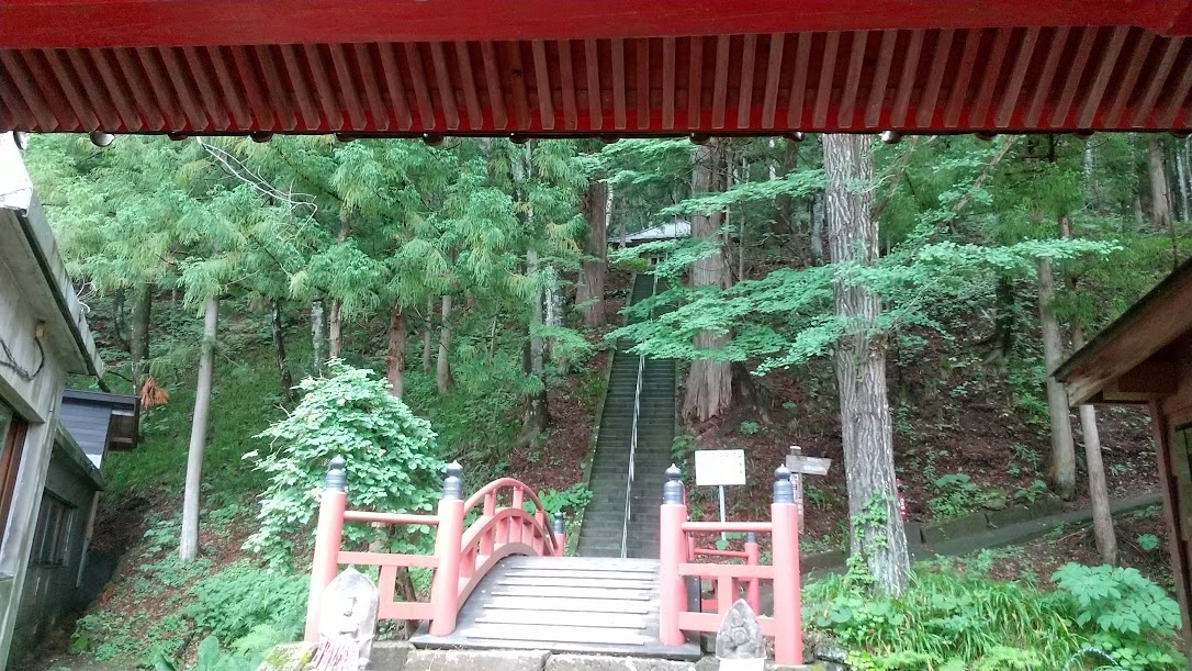 お寺は、沼田市の山奥深くに佇んでいます。ふもとに天狗のお面を扱うお店があって、かつてはここから参道の山道を登って行ったんですね。朱塗りの塔や赤い橋が見れます。今ではクルマで境内まで行けますけれど、参道を登っての参拝も良さそうです。