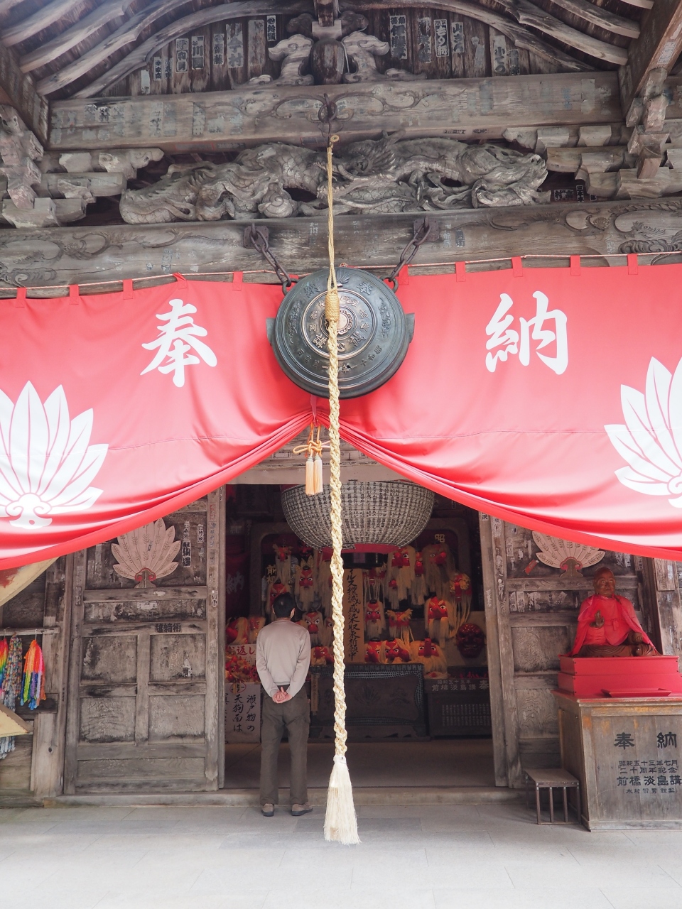 このお寺には「日本一の大天狗」や「交通安全身代わり大天狗」が安置されていました。迦葉山の中峯堂へは上り下りそれぞれ一方通行... 続きを読むになっていたので、道幅は狭かったのですが、比較的安心して運転できました。中峯堂には大小様々な大きさの天狗の面が奉納されていました。 閉じる