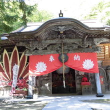 巨大な天狗のお面があるお寺です。