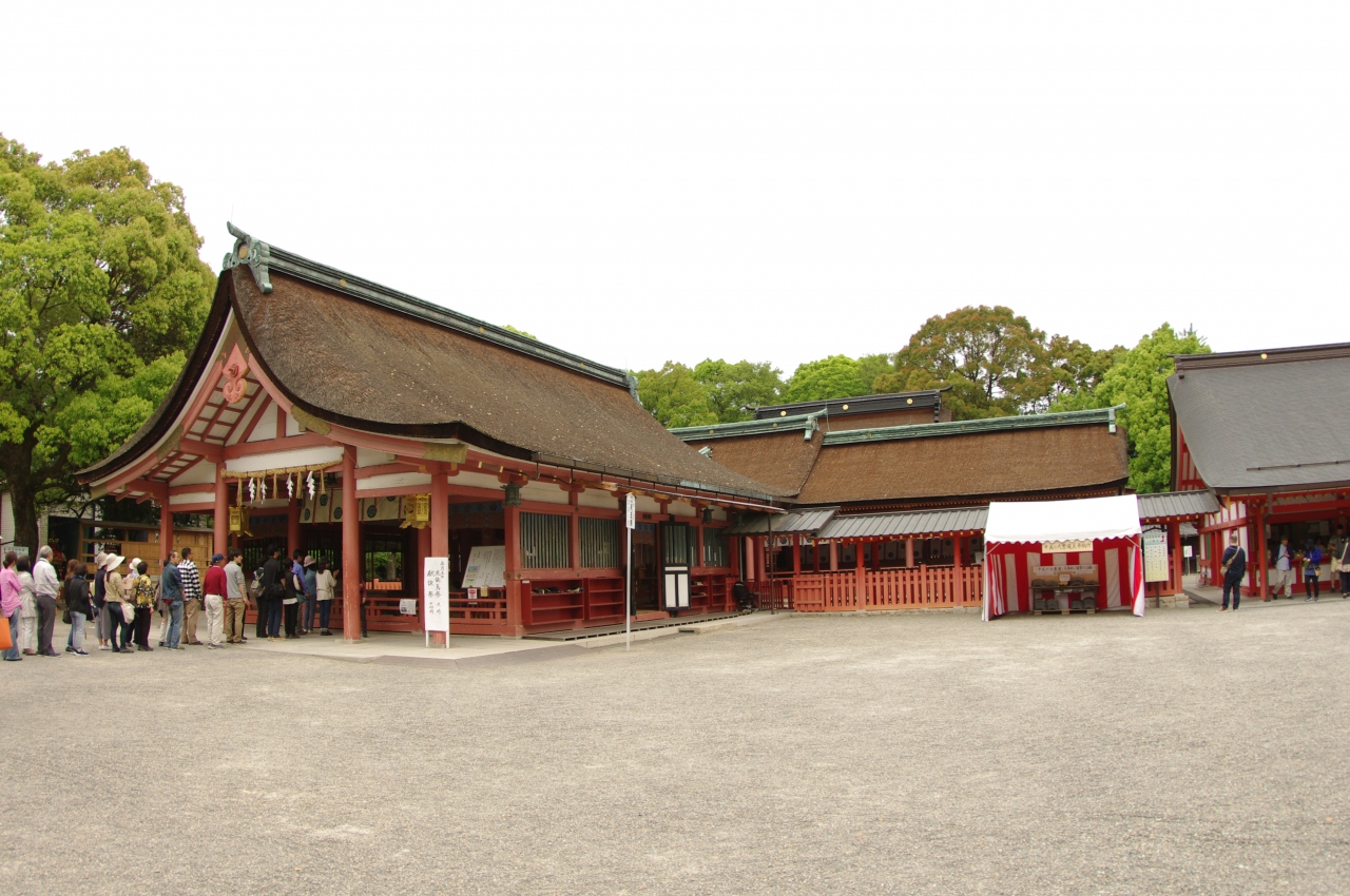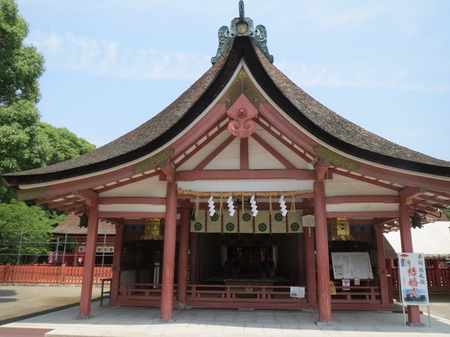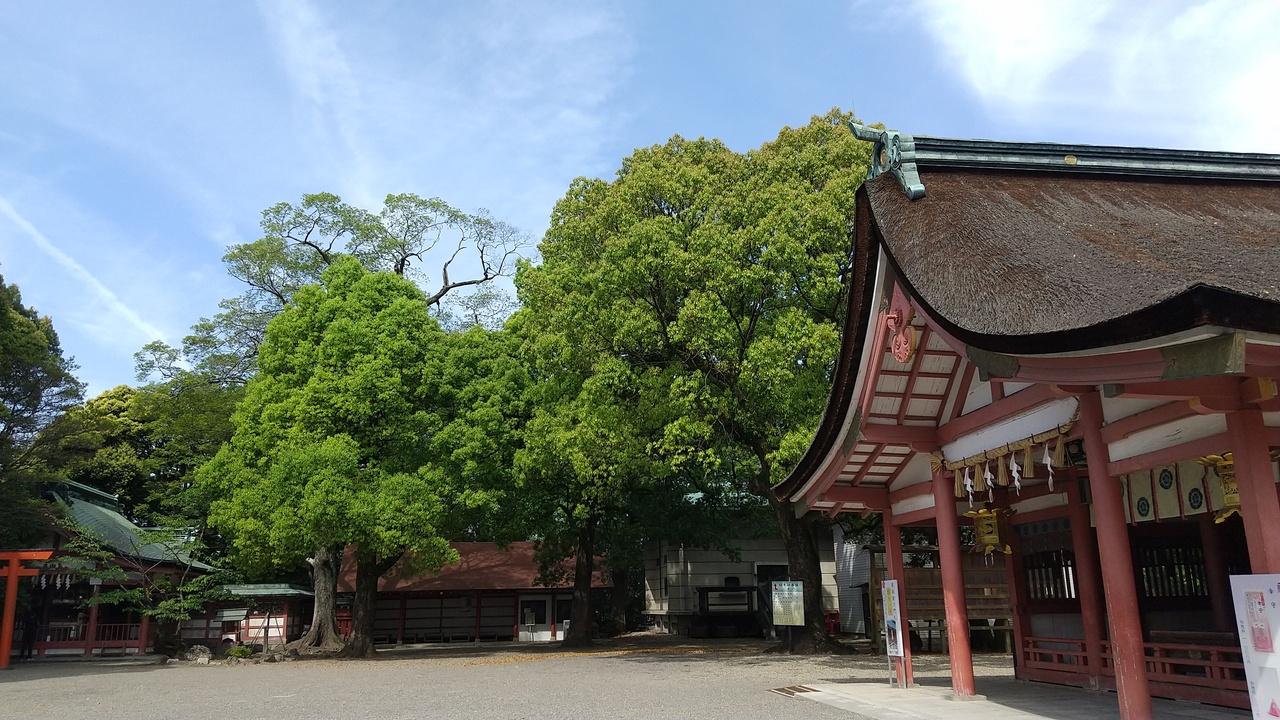 境内の建築物の配置等から「尾張造」と呼ばれる特徴のある神社で、「神明造」の熱田神宮も、明治に建て替えられるまでは一緒だったそうです。