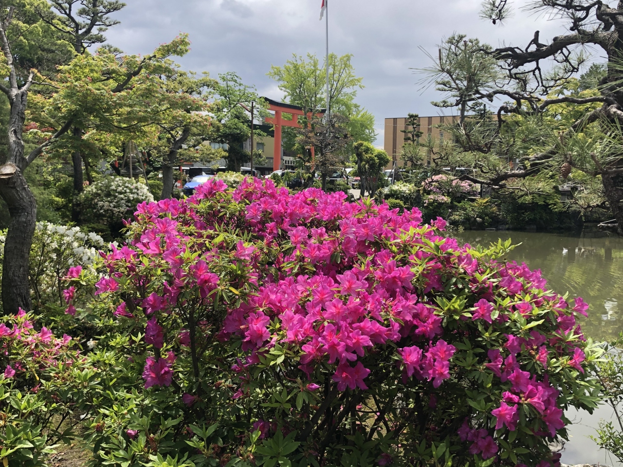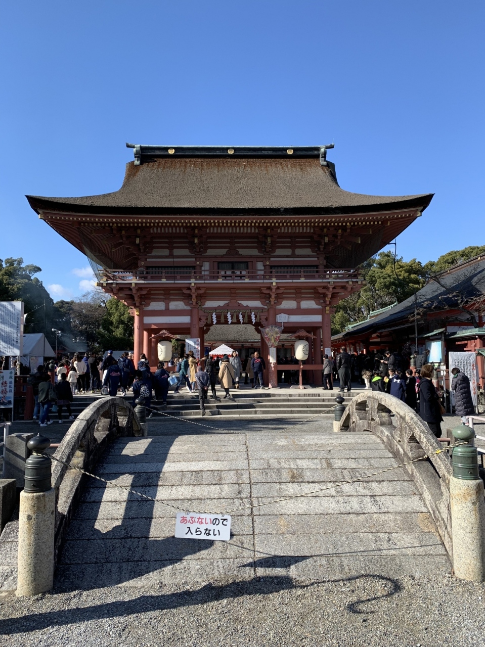 初めてこの神社を訪れました。赤い大きな鳥居の左側に大イチョウの木が立っています。見上げるほど大きなイチョウには神格化されて... 続きを読むいるため、これまた大きな注連縄がかかっていました。鳥居をくぐると、渡ることは禁止されている太鼓橋が目に飛び込んできます。明治時代に作られたような橋で趣があります。鳥居の右側奥に日本庭園があります。池の周囲は散策路があり、いろいろな角度から素晴らしい景色が見られます。東側にある参拝者用駐車場の脇では、おみと祭りで使われる大松明を作っている最中を見ることができました。Y新聞記者がこの作業の様子を写真撮影していました。私もつられて撮影してしまいました。