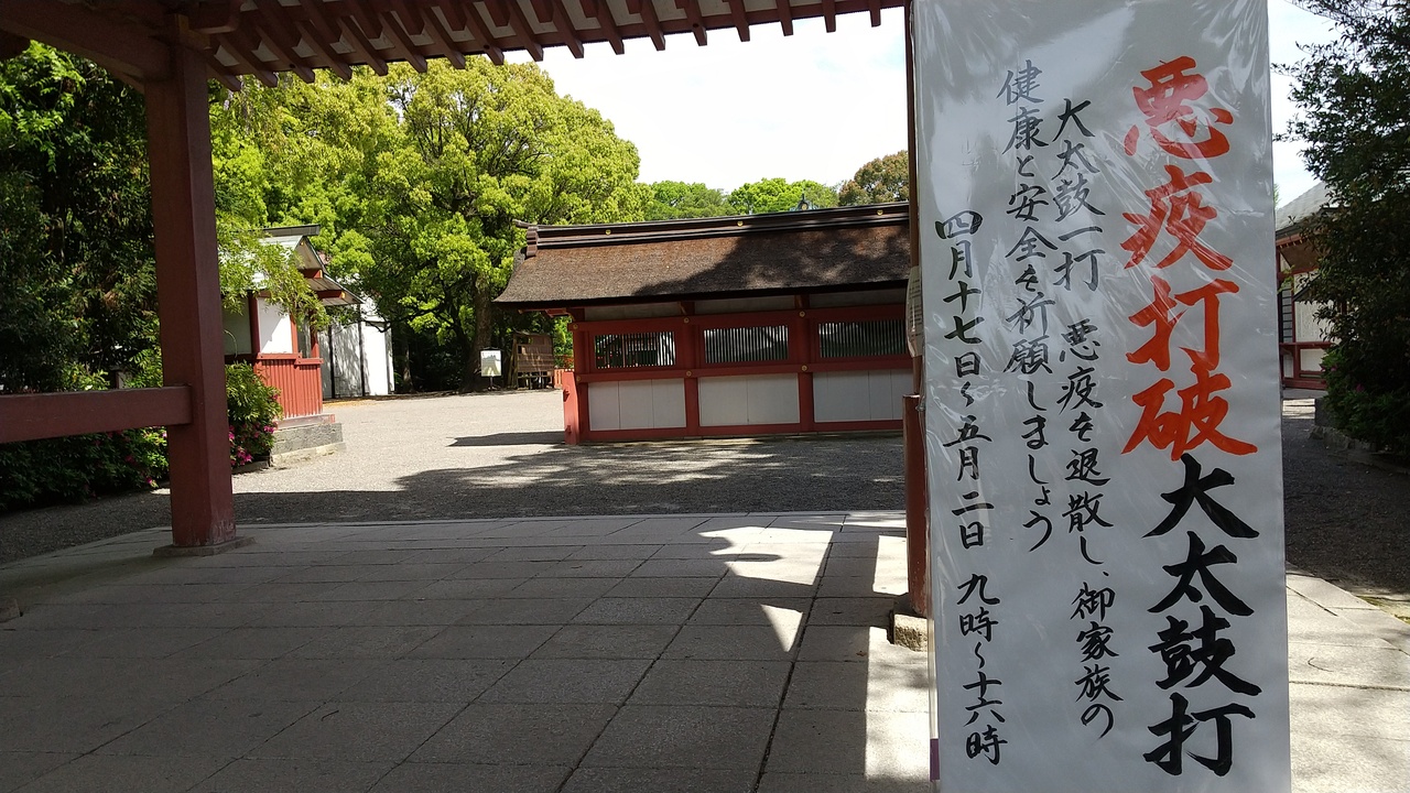 参拝当日は、観光客に混じって宮参りの参拝客がちらほら、また境内では全国天王社自然災害復興義捐として「大太鼓洞内くぐり」が催されており、これを体験して来ました。