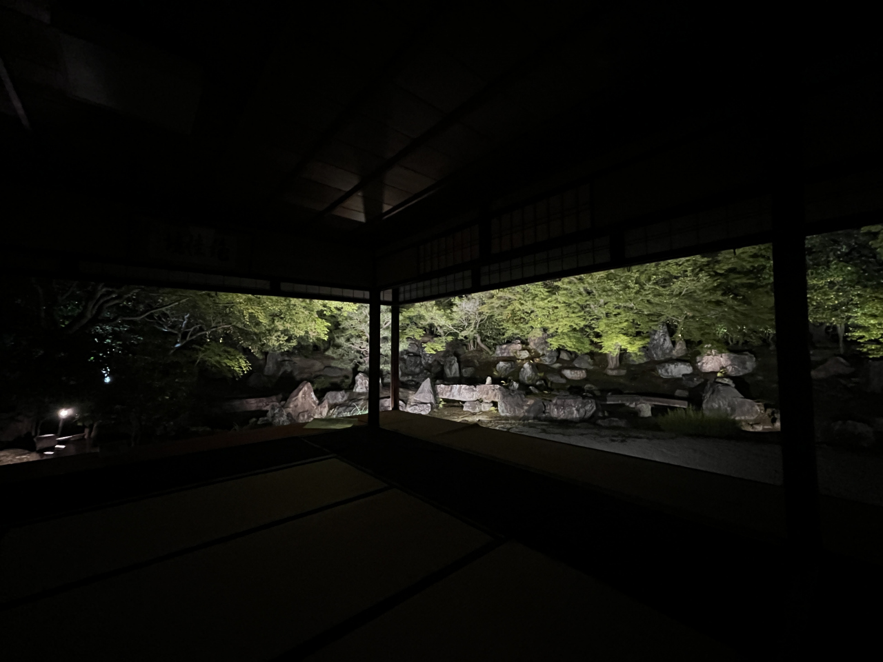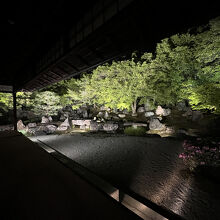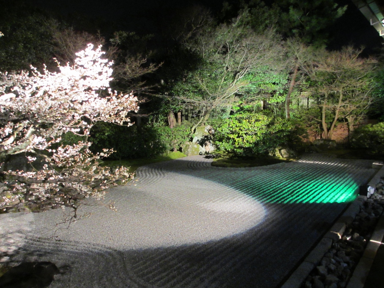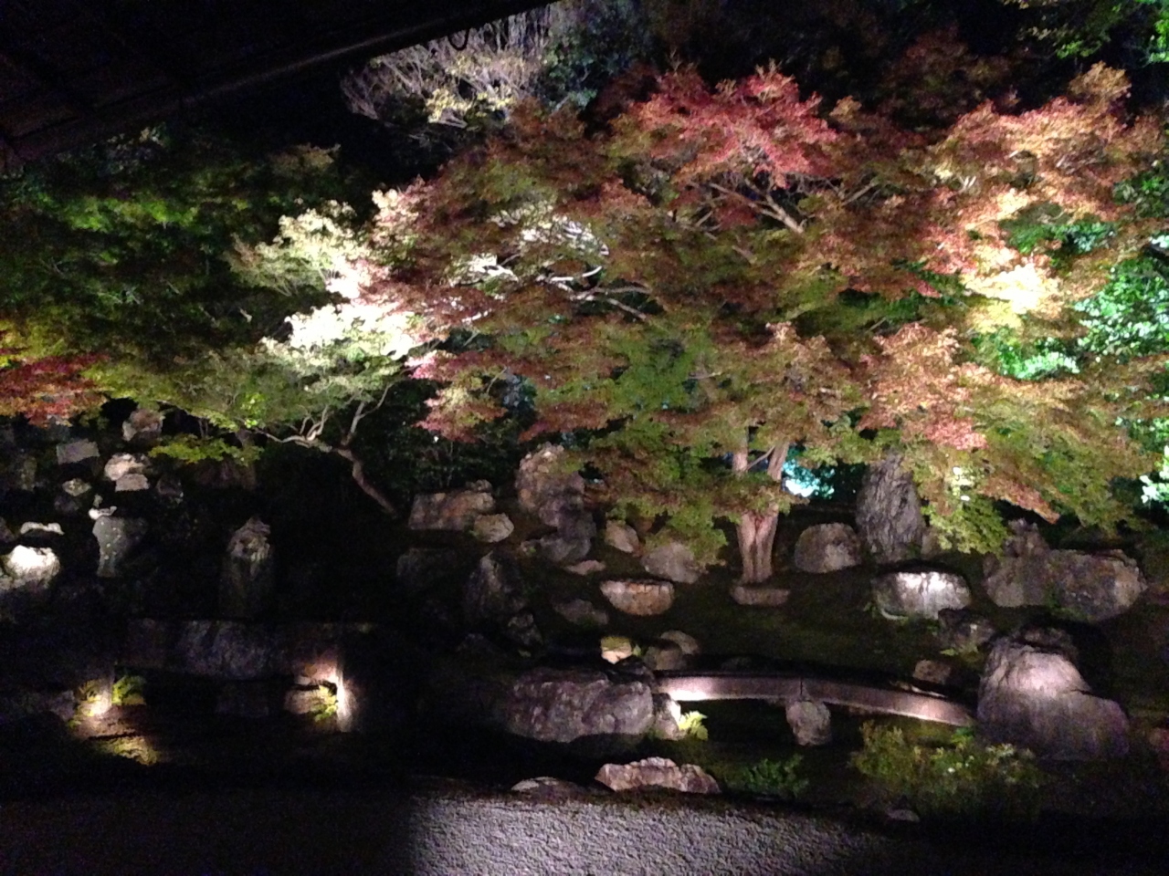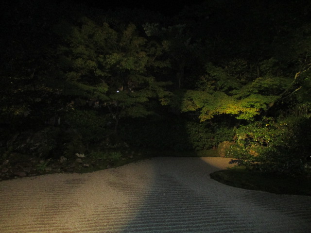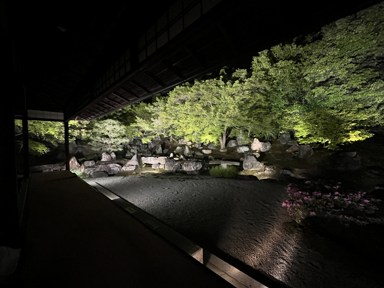 祇園で夕食を終えてからこちらに夜間ライトアップを見に行きました。入り口で靴を脱ぎ拝観開始です。最初に南庭、まあまあきれいか... 続きを読むなぁ。ずーと進むと北庭、これはすごい! ライトアップされた庭が幻想的というか見ごたえあります。その場にいらした係の方に「全国から集められた石が庭に配置されている」「荒れていたところを庭師が整備」などなど説明して頂きました。いやあ期待値以上、見ごたえあります、ずーと見ていられます。 拝観時間は21:30までとなっていて、21時頃行きましたが、空いていたので幻想的な庭を十分堪能できました。 閉じる