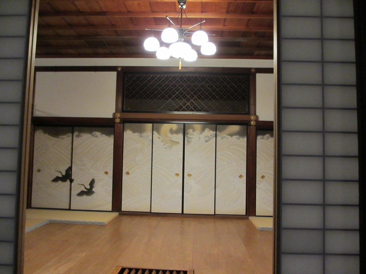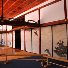 そして、長谷川等伯の襖絵もまた珍しい感じで、秀吉の桐紋が地模様のように一面に配された上に山水画が描かれています。勝手に等伯が上がり込んで絵を描いたと伝えられているそうです。ただ、残念ながら現在、展示されているものは複製品です。 閉じる投稿日:2014/10/13