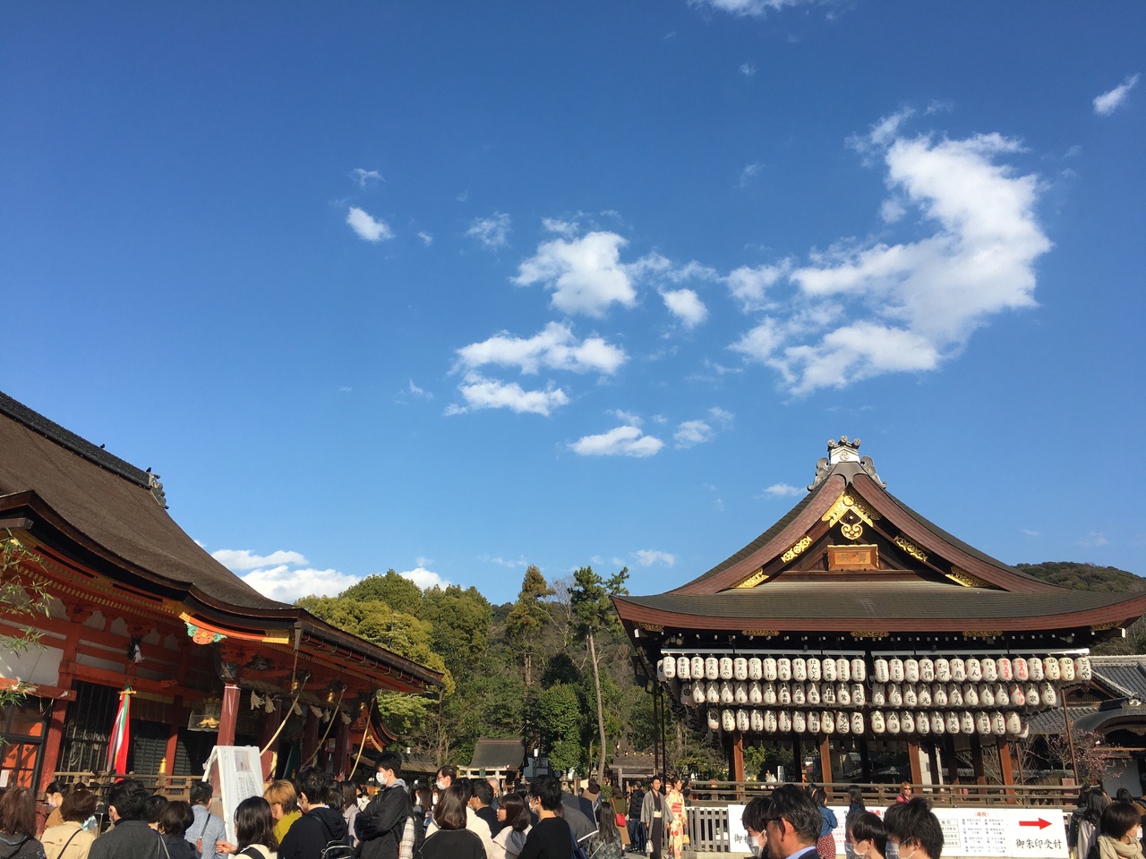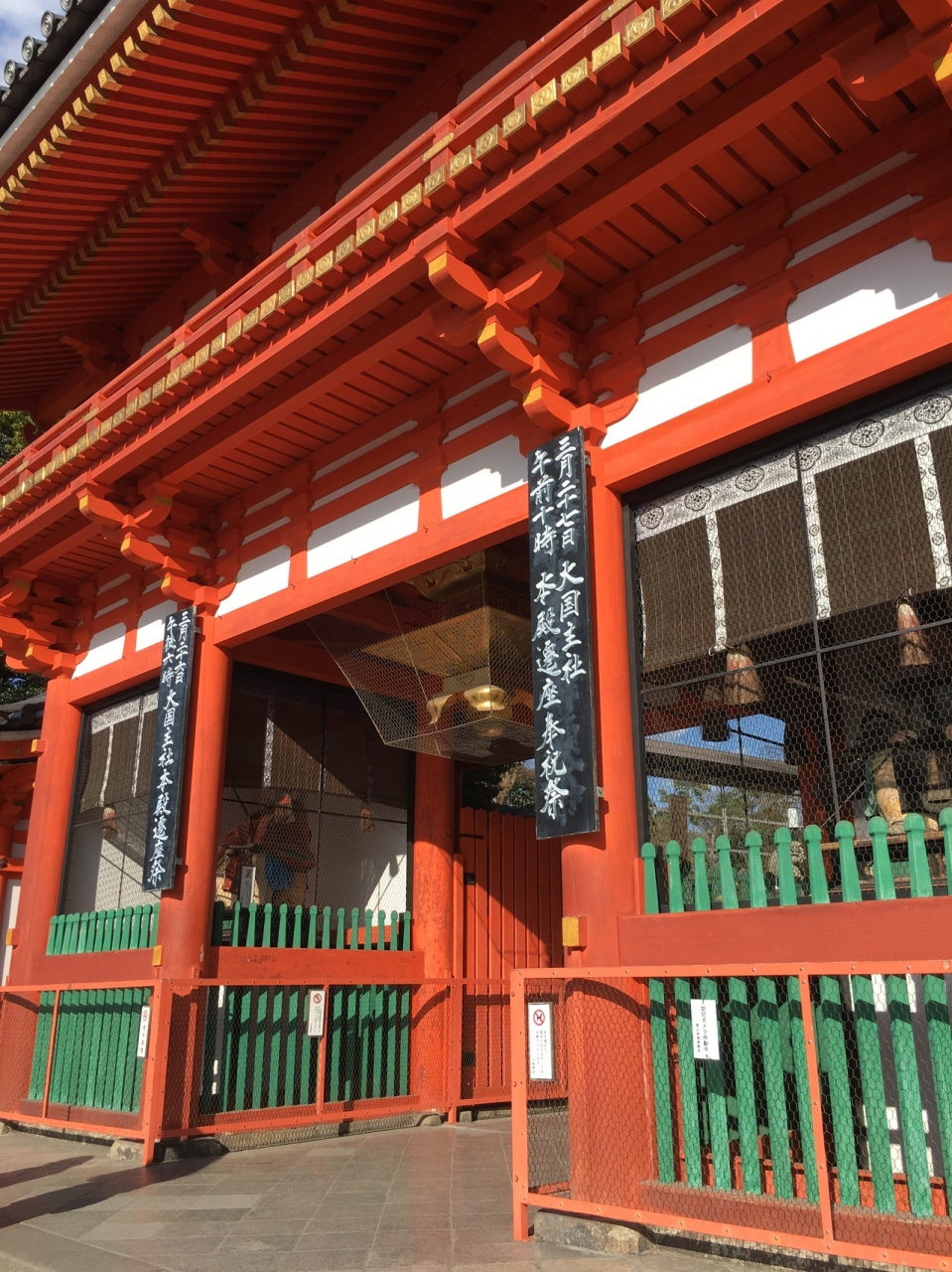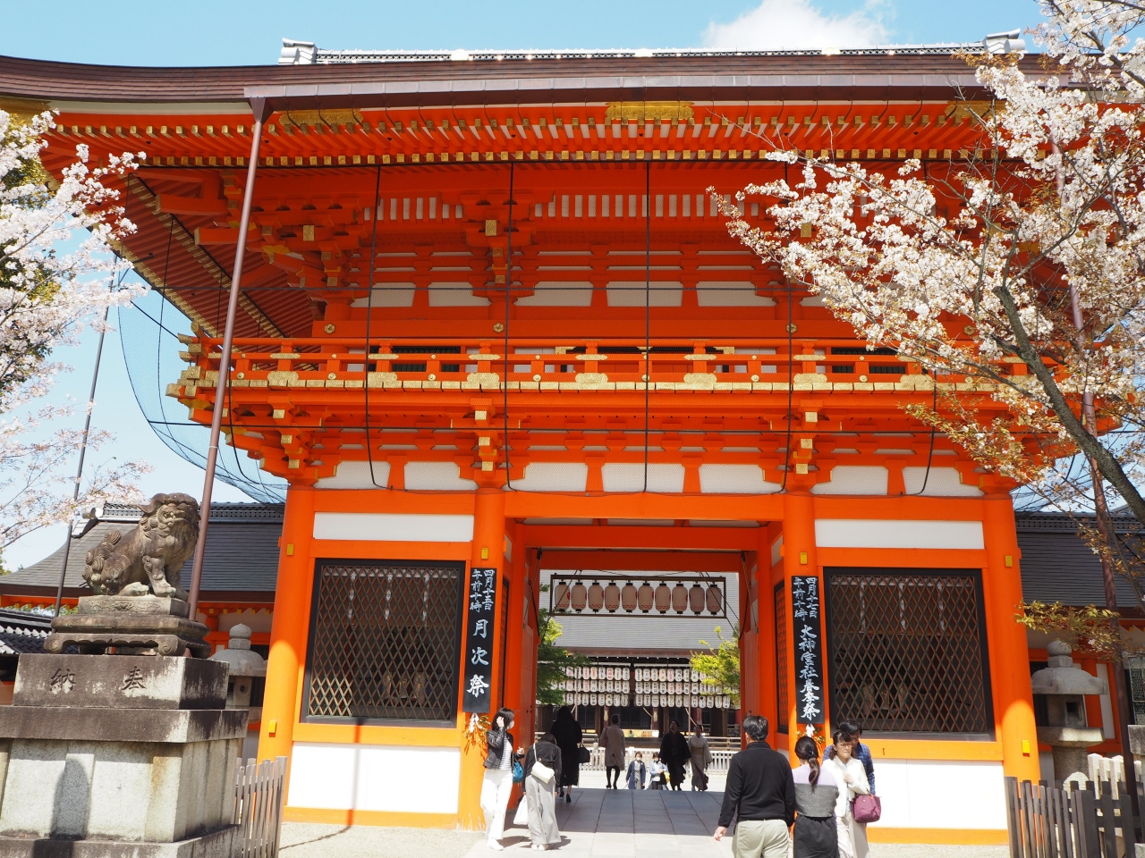 牛頭天王を祀っているようです。 基本的には疫病退散の神社ですが、美人祈願や縁結び、さらには商売繁盛の恵比須様も祀られてい... 続きを読むました。歴史の重みある大絵馬を掲げ、訪れる参拝客を出迎えます。 四条通の突き当りに大きな門がある他、境内南側にも門が据えられていました。円山公園にも隣接しており、多くの人でごった返していました。 閉じる