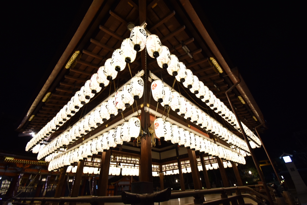 厄除け・縁結びの神、祇園さんの呼び名で親しまれている。日本三大祭のひとつ祇園祭は京都の代表的行事である。師走の風物詩「をけら詣り」も有名。全国の祇園社の総本社。