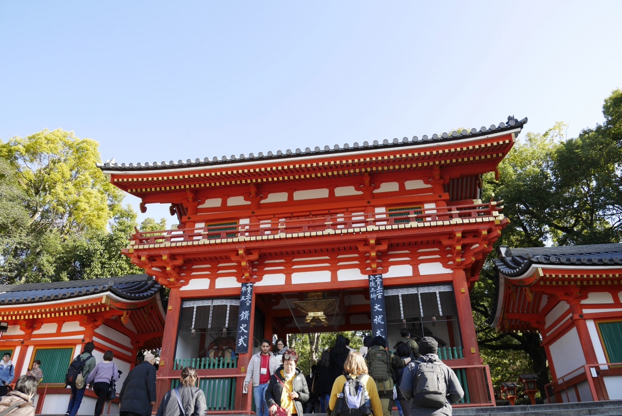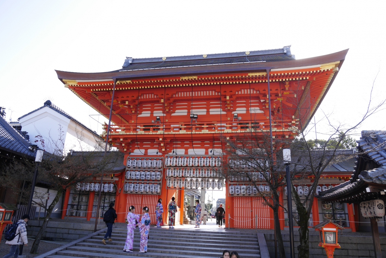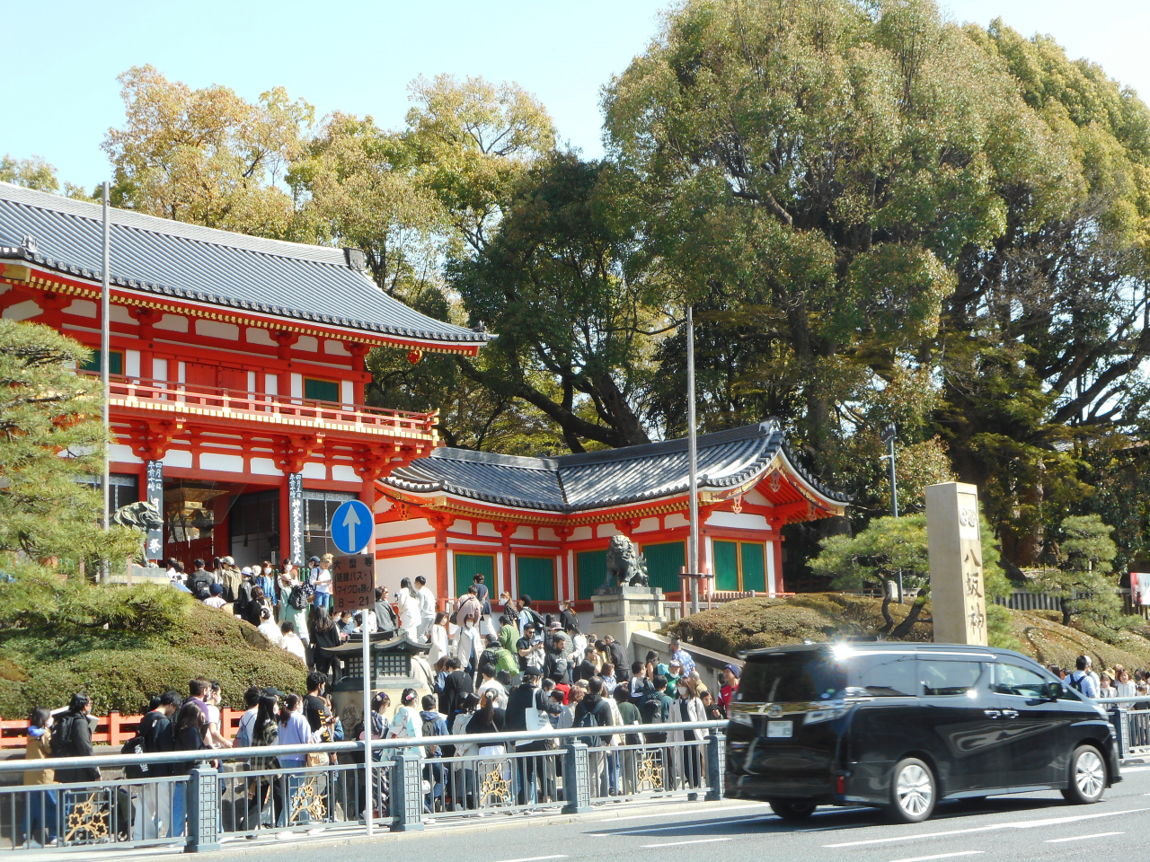 厄除け・縁結びの神、祇園さんの呼び名で親しまれている。日本三大祭のひとつ祇園祭は京都の代表的行事である。師走の風物詩「をけら詣り」も有名。全国の祇園社の総本社。
