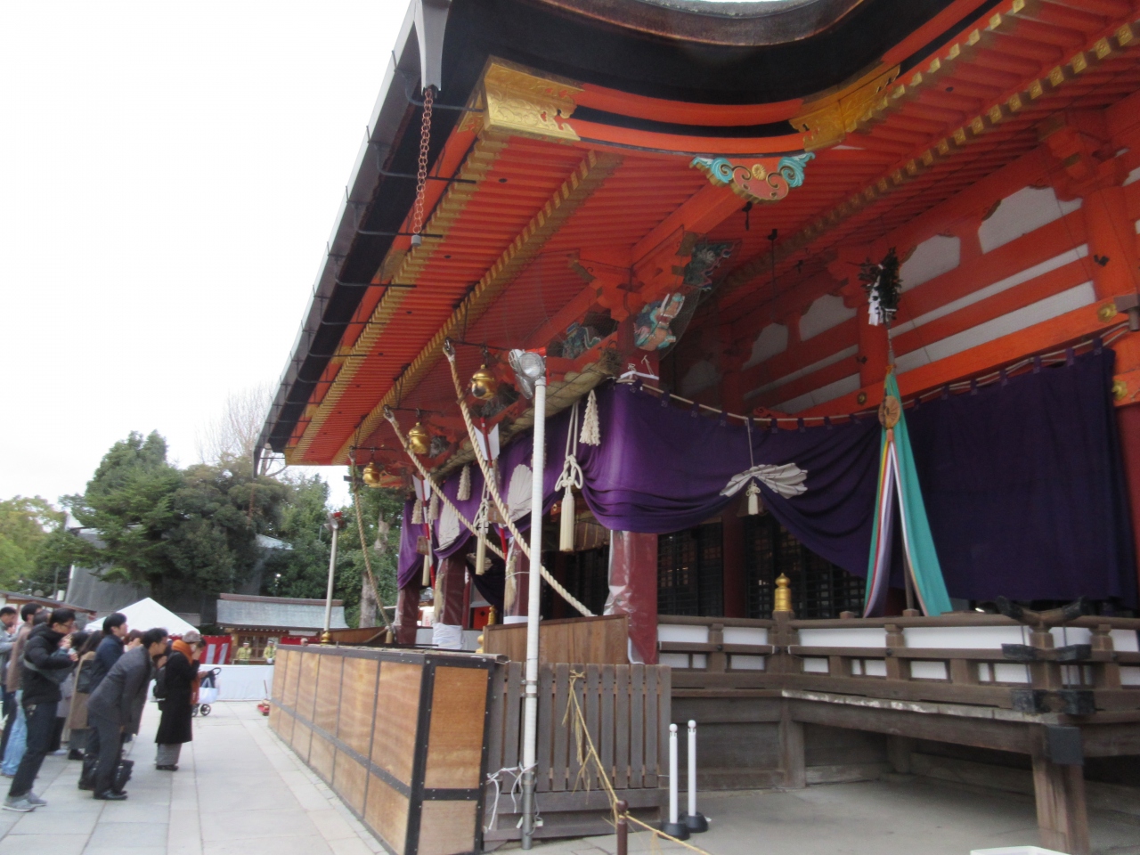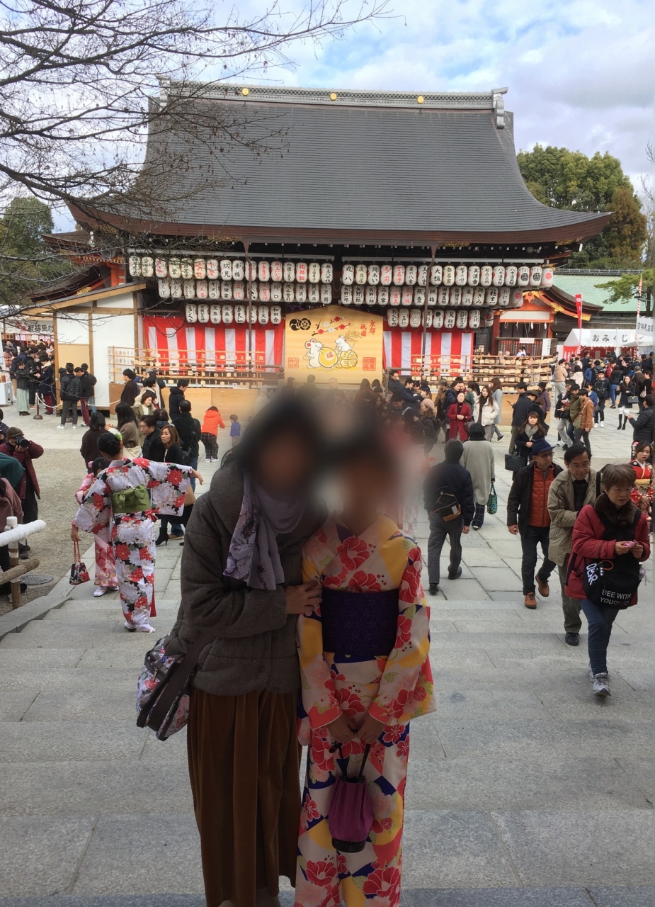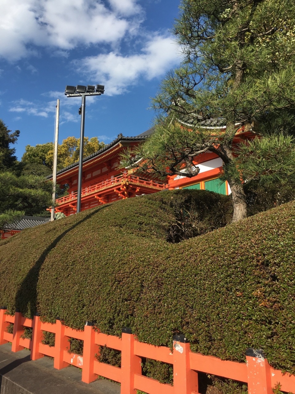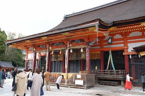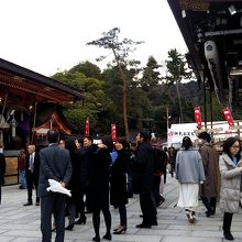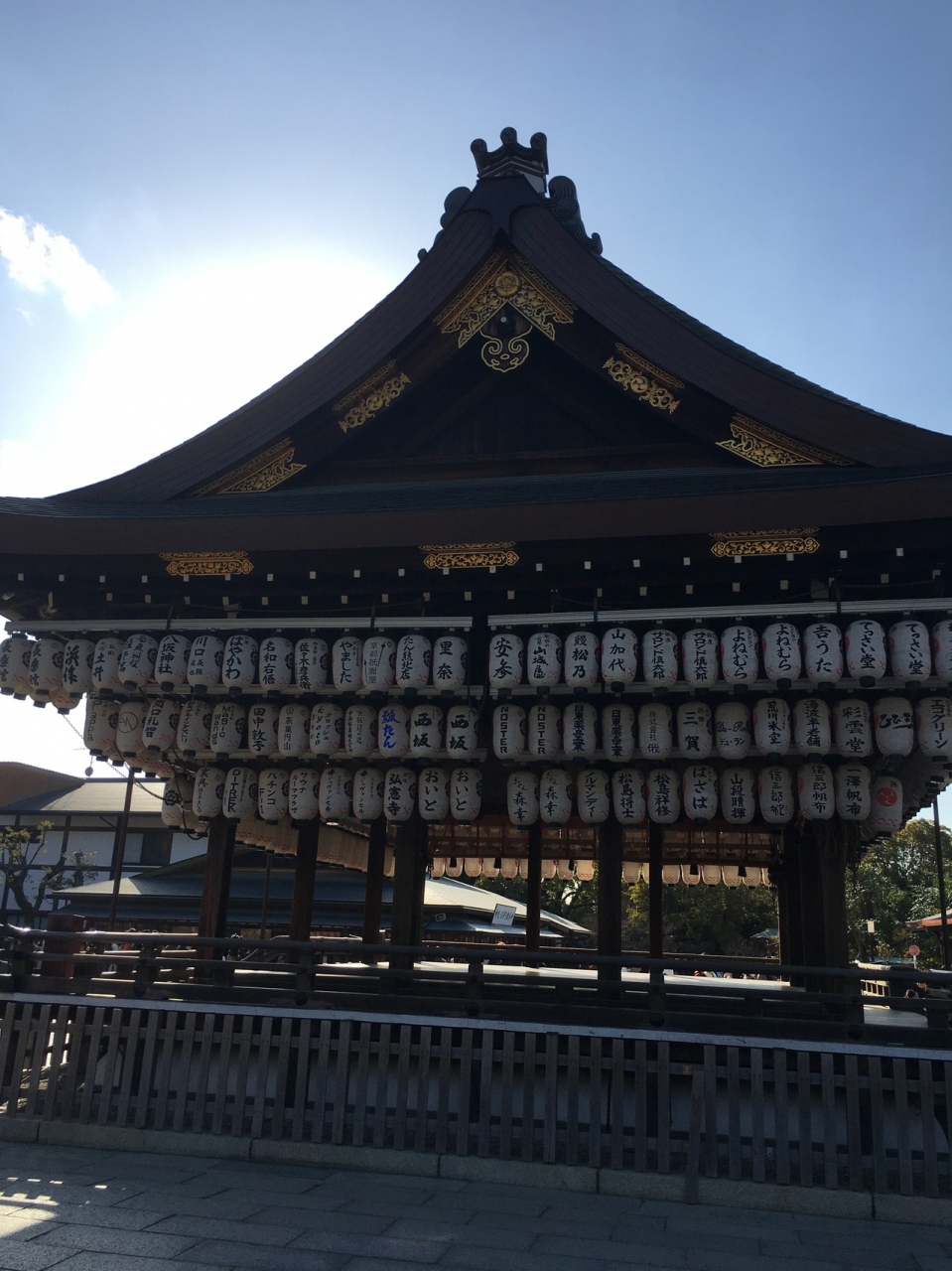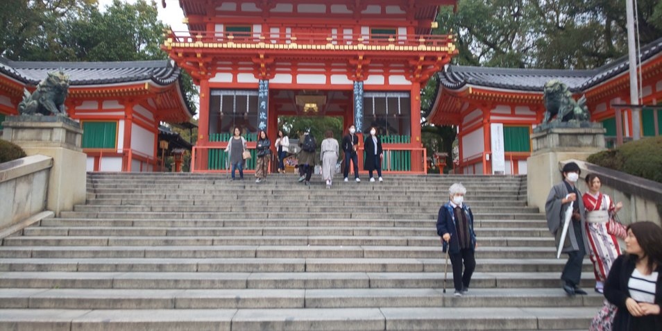 牛頭天王を祀っているようです。 基本的には疫病退散の神社ですが、美人祈願や縁結び、さらには商売繁盛の恵比須様も祀られてい... 続きを読むました。歴史の重みある大絵馬を掲げ、訪れる参拝客を出迎えます。 四条通の突き当りに大きな門がある他、境内南側にも門が据えられていました。円山公園にも隣接しており、多くの人でごった返していました。 閉じる