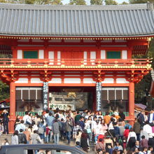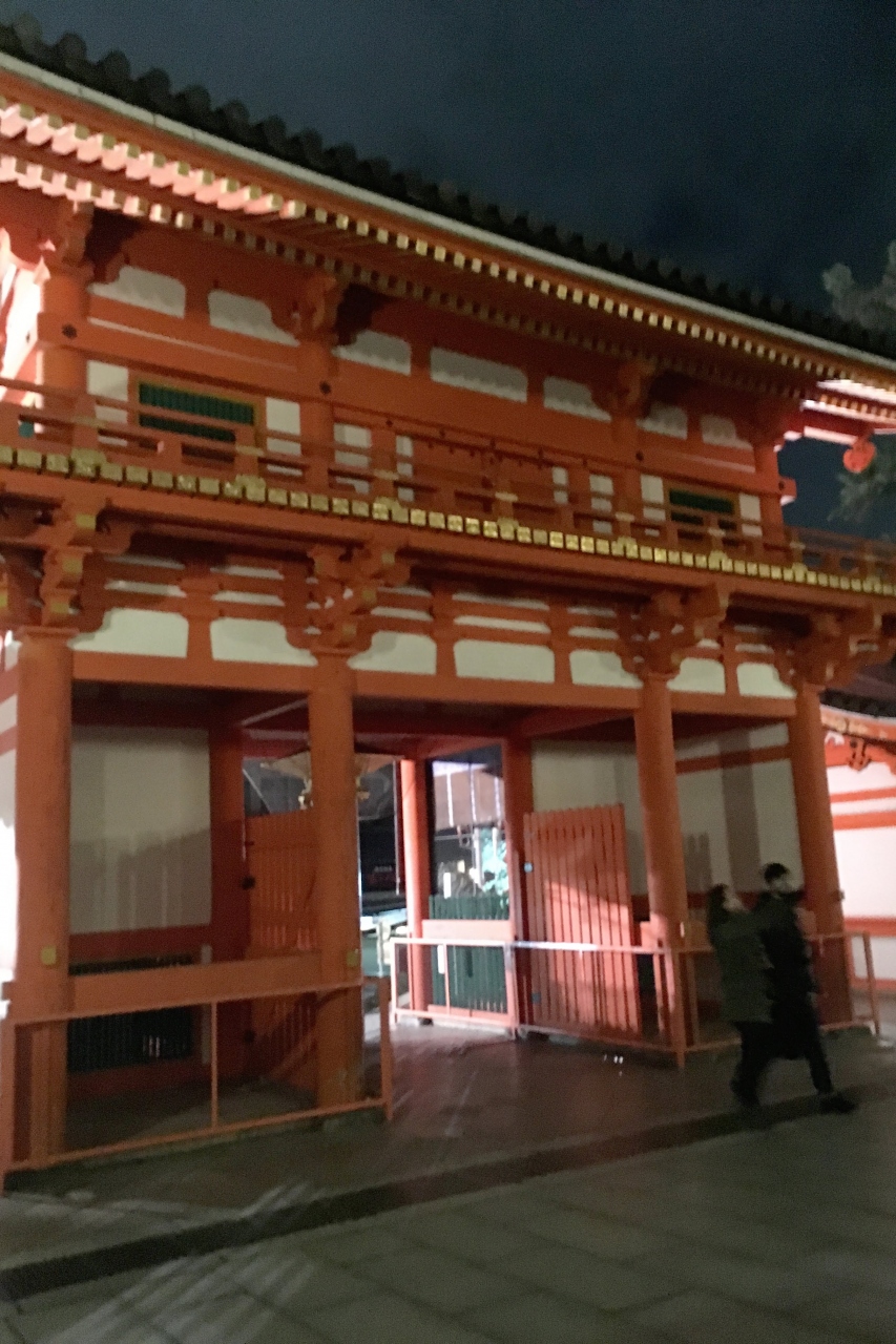 牛頭天王を祀っているようです。 基本的には疫病退散の神社ですが、美人祈願や縁結び、さらには商売繁盛の恵比須様も祀られてい... 続きを読むました。歴史の重みある大絵馬を掲げ、訪れる参拝客を出迎えます。 四条通の突き当りに大きな門がある他、境内南側にも門が据えられていました。円山公園にも隣接しており、多くの人でごった返していました。 閉じる