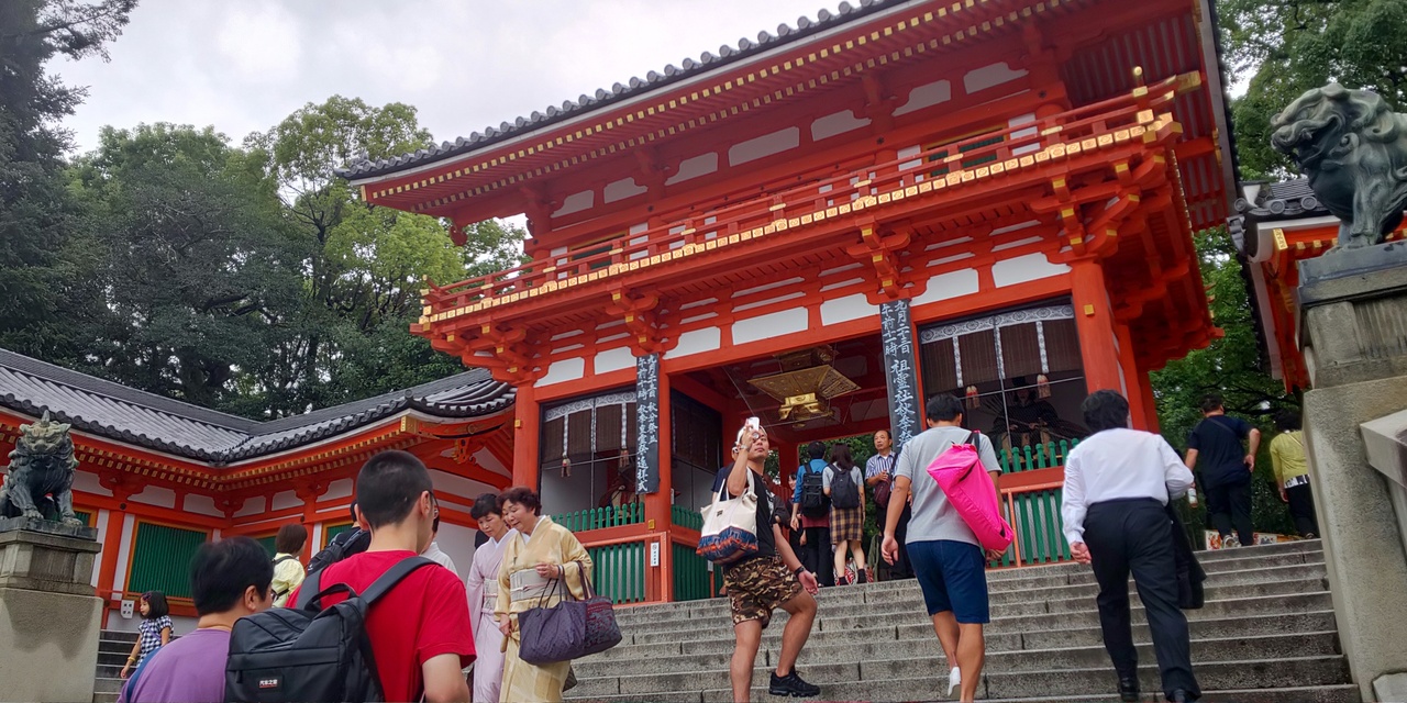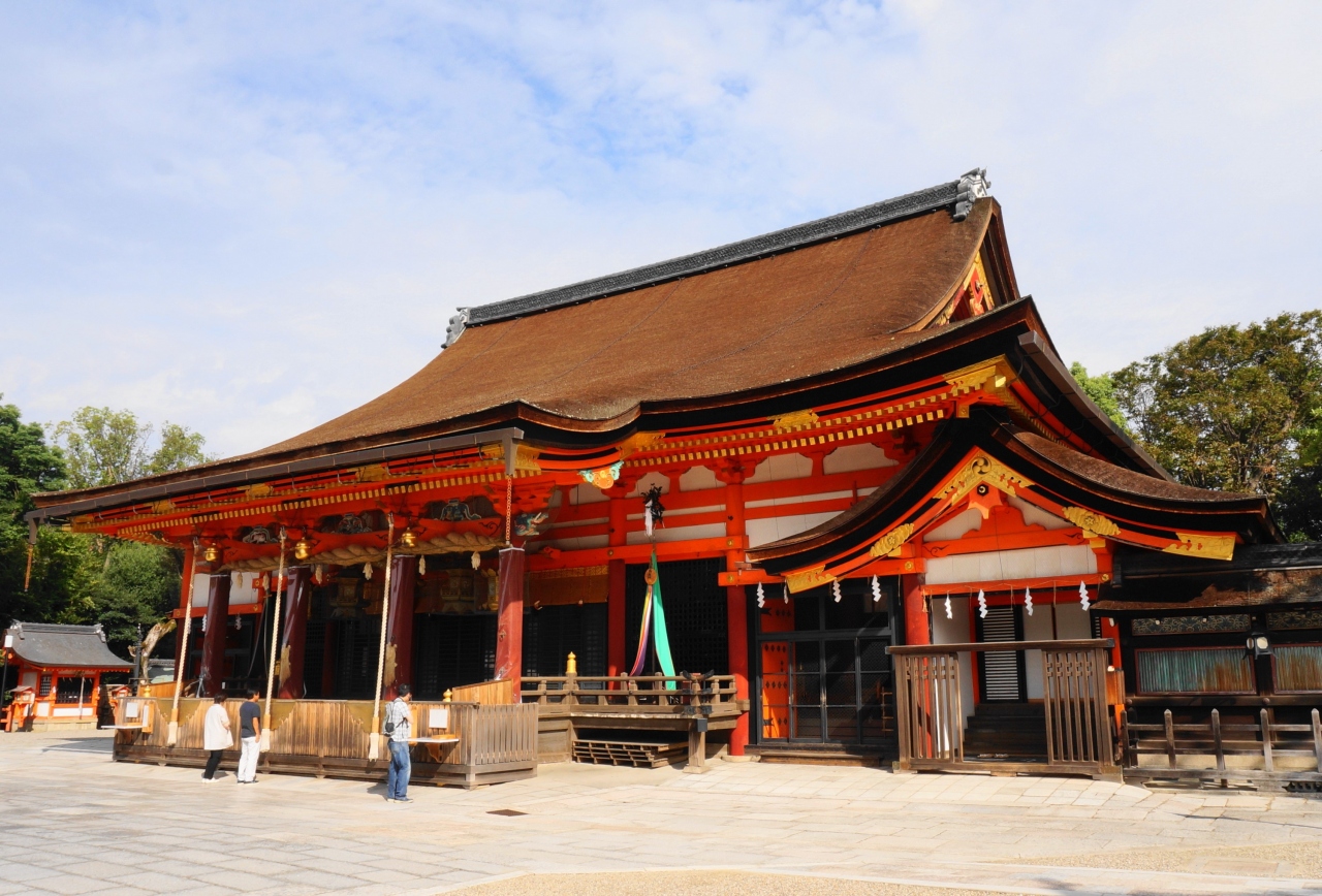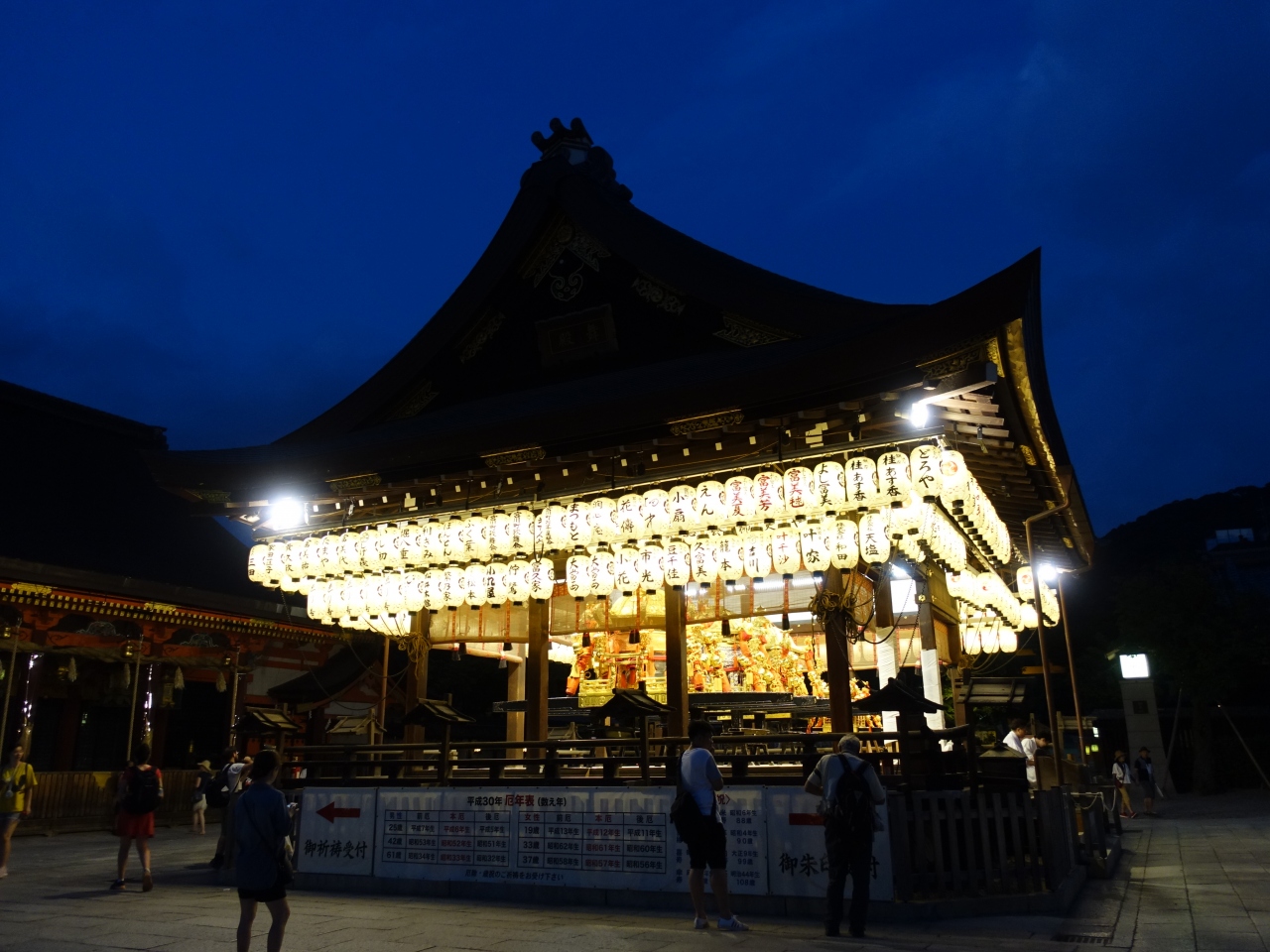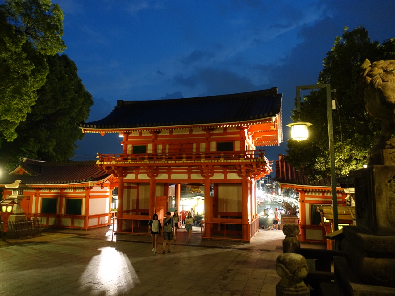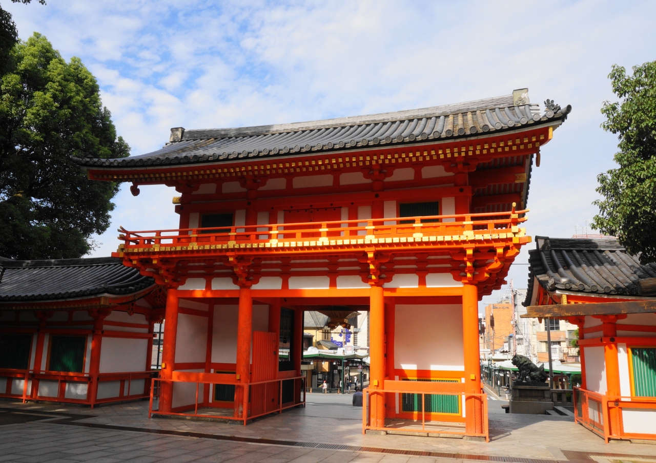 厄除け・縁結びの神、祇園さんの呼び名で親しまれている。日本三大祭のひとつ祇園祭は京都の代表的行事である。師走の風物詩「をけら詣り」も有名。全国の祇園社の総本社。