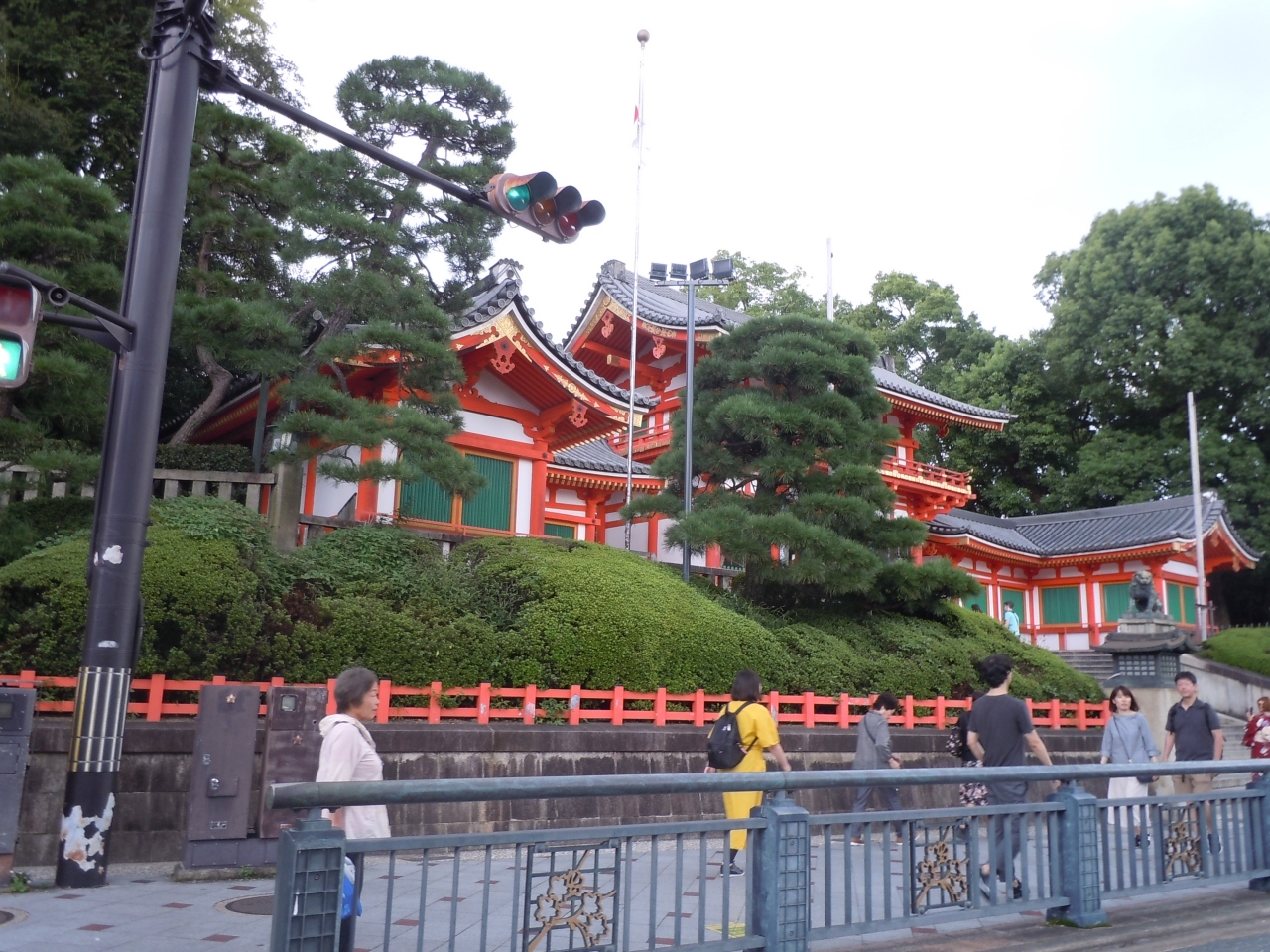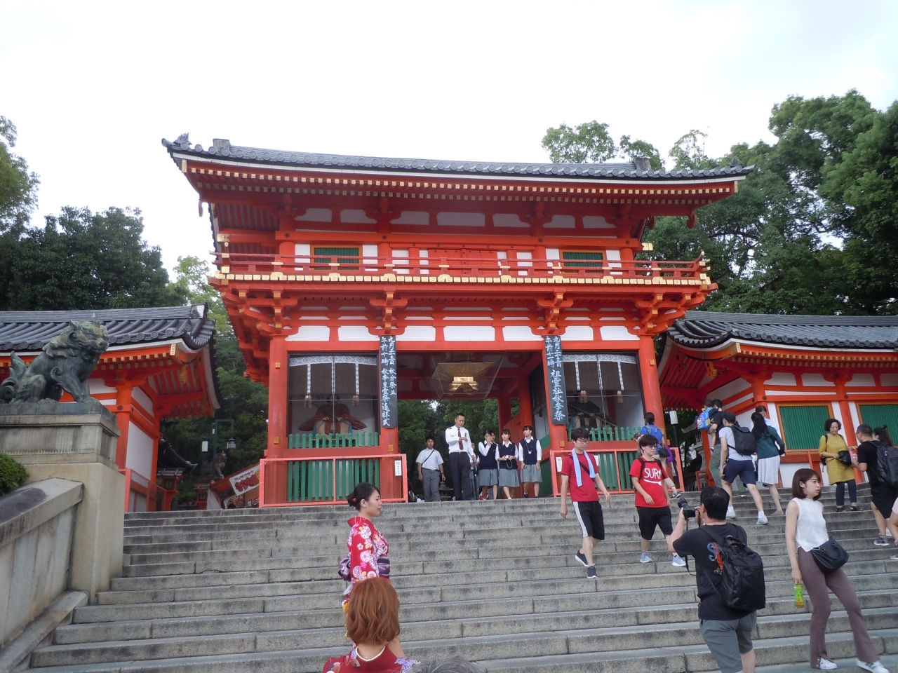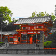 牛頭天王を祀っているようです。 基本的には疫病退散の神社ですが、美人祈願や縁結び、さらには商売繁盛の恵比須様も祀られてい... 続きを読むました。歴史の重みある大絵馬を掲げ、訪れる参拝客を出迎えます。 四条通の突き当りに大きな門がある他、境内南側にも門が据えられていました。円山公園にも隣接しており、多くの人でごった返していました。 閉じる
