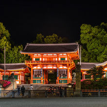 八坂神社の四条通の正面に見えている赤い門