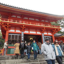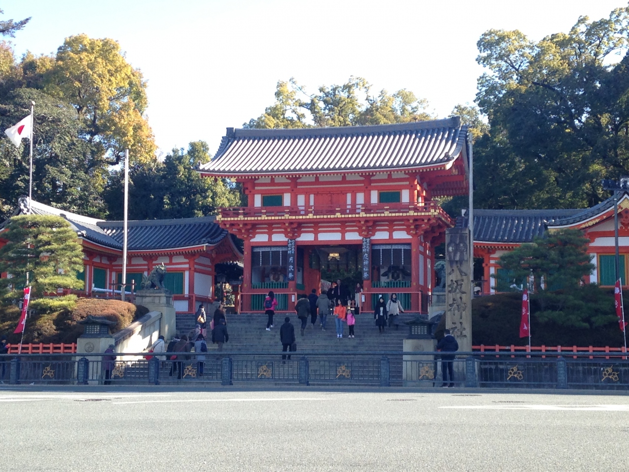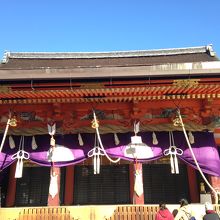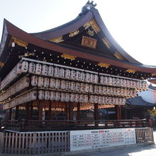 牛頭天王を祀っているようです。 基本的には疫病退散の神社ですが、美人祈願や縁結び、さらには商売繁盛の恵比須様も祀られてい... 続きを読むました。歴史の重みある大絵馬を掲げ、訪れる参拝客を出迎えます。 四条通の突き当りに大きな門がある他、境内南側にも門が据えられていました。円山公園にも隣接しており、多くの人でごった返していました。 閉じる
