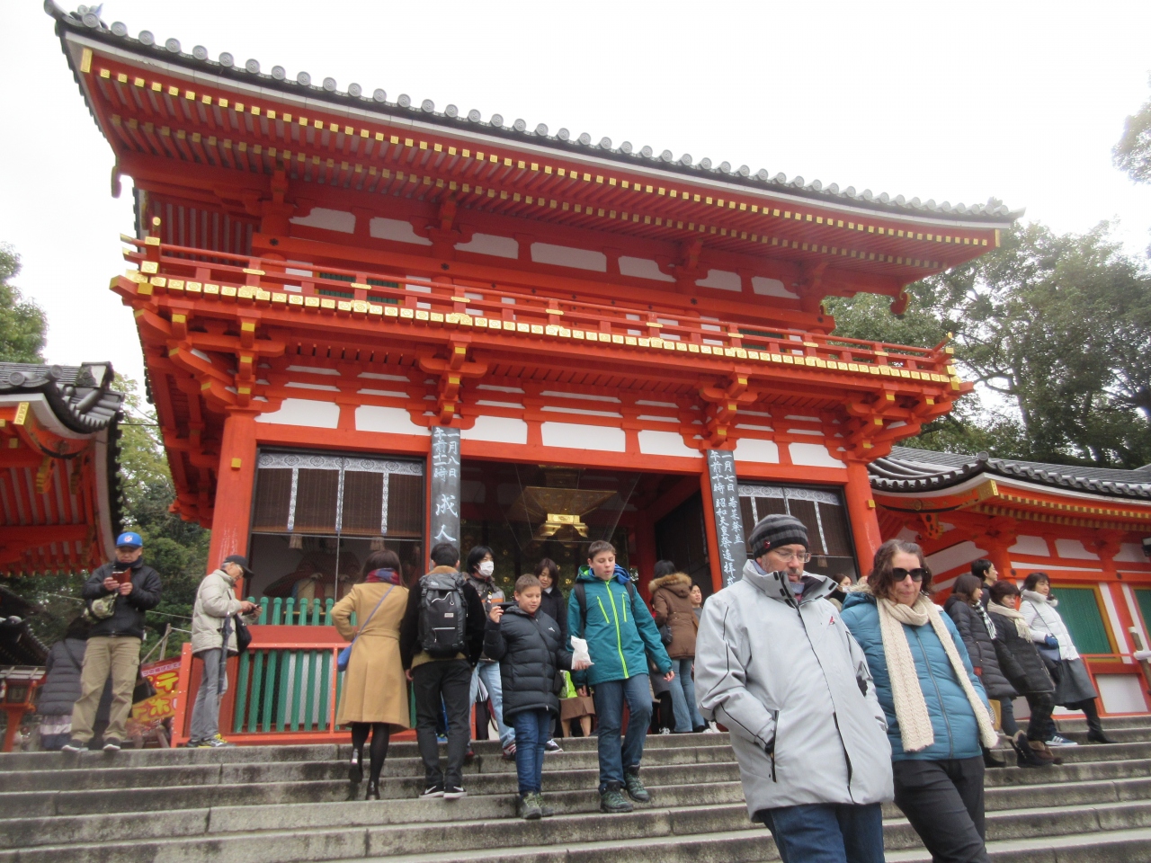 厄除け・縁結びの神、祇園さんの呼び名で親しまれている。日本三大祭のひとつ祇園祭は京都の代表的行事である。師走の風物詩「をけら詣り」も有名。全国の祇園社の総本社。