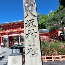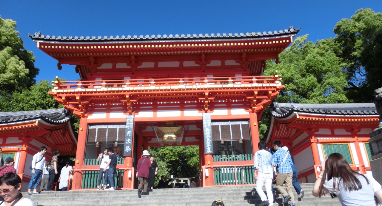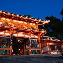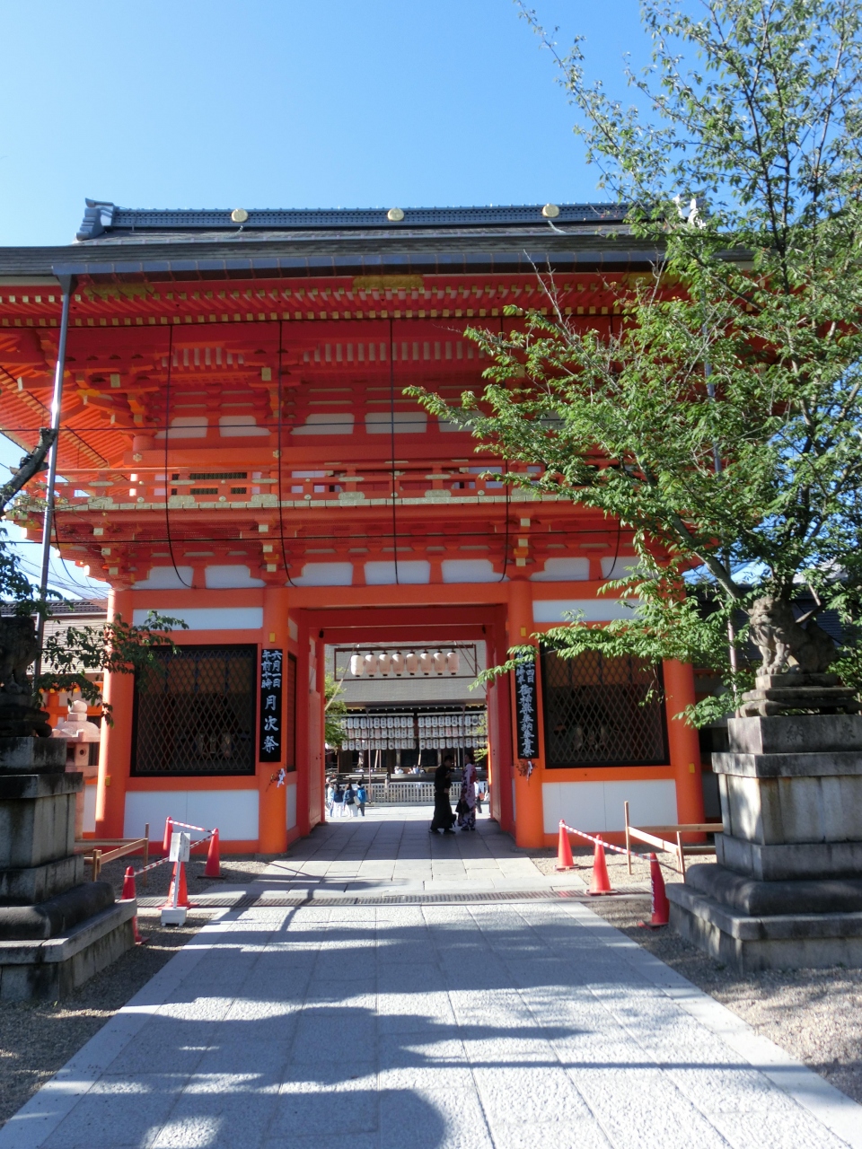 修これが八坂神社の正門、修復を終えたばかりで朱色も鮮やかだった