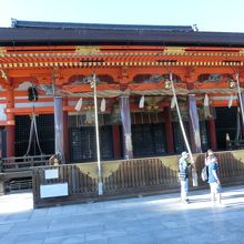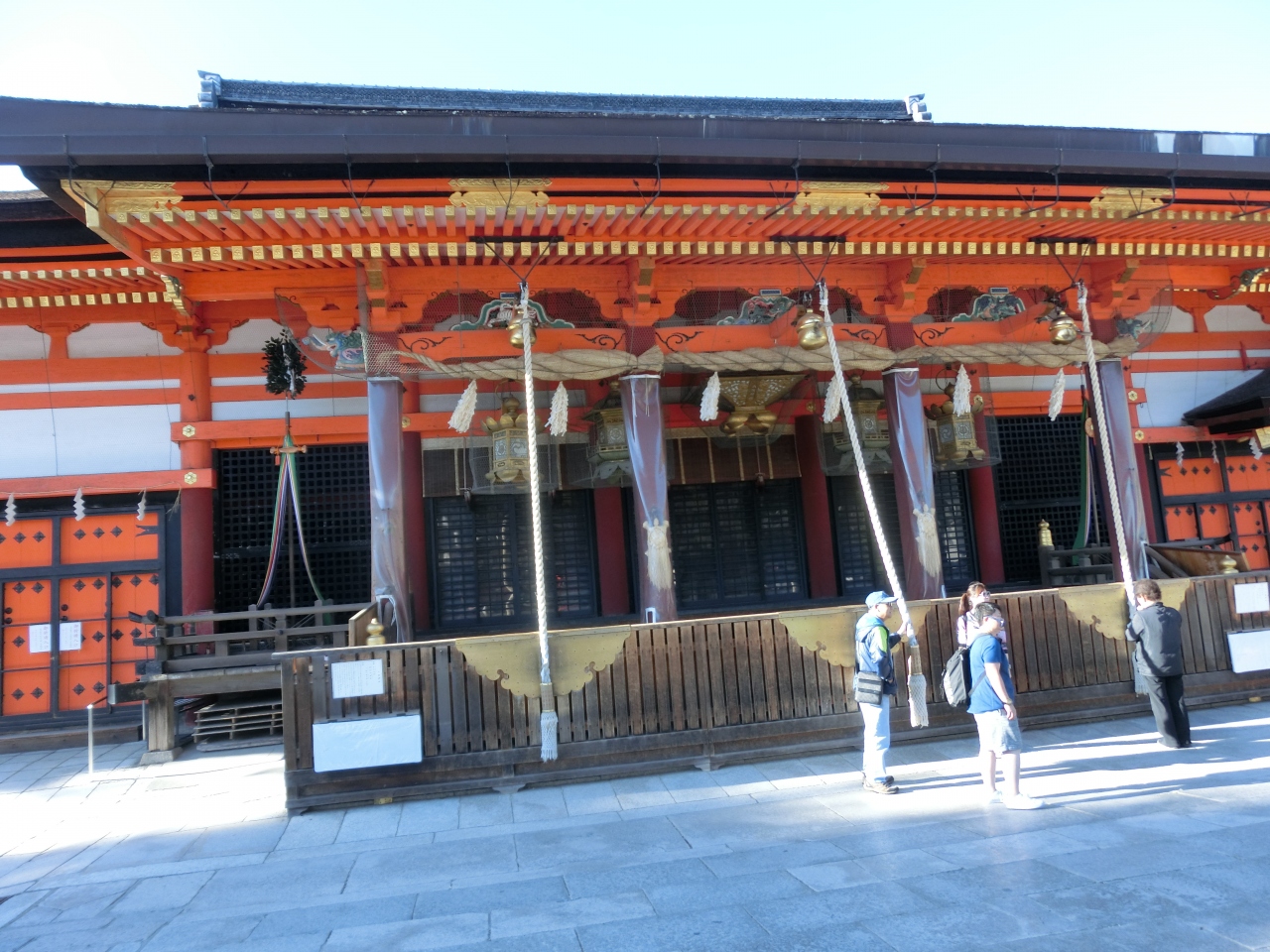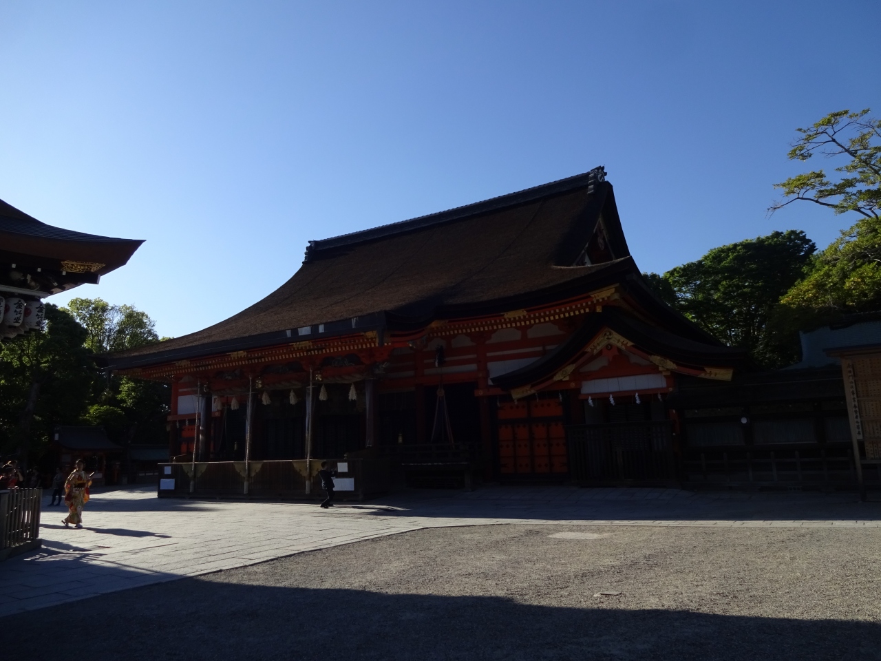 牛頭天王を祀っているようです。 基本的には疫病退散の神社ですが、美人祈願や縁結び、さらには商売繁盛の恵比須様も祀られてい... 続きを読むました。歴史の重みある大絵馬を掲げ、訪れる参拝客を出迎えます。 四条通の突き当りに大きな門がある他、境内南側にも門が据えられていました。円山公園にも隣接しており、多くの人でごった返していました。 閉じる