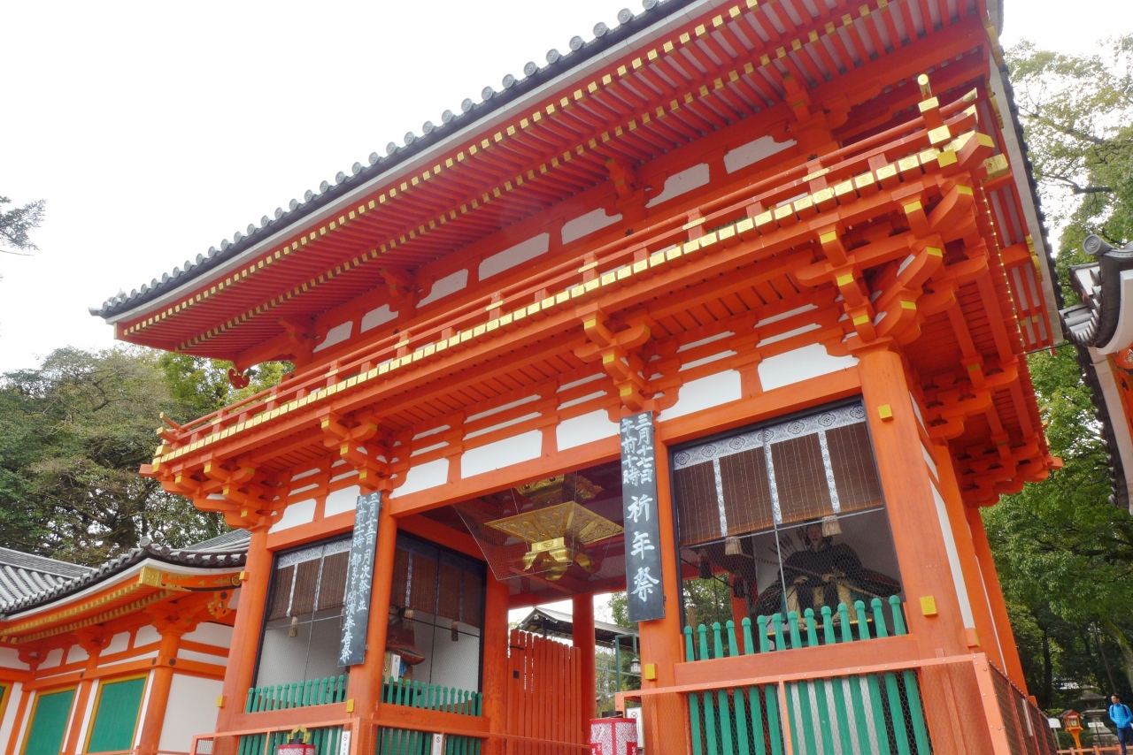 厄除け・縁結びの神、祇園さんの呼び名で親しまれている。日本三大祭のひとつ祇園祭は京都の代表的行事である。師走の風物詩「をけら詣り」も有名。全国の祇園社の総本社。