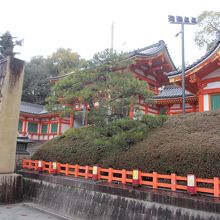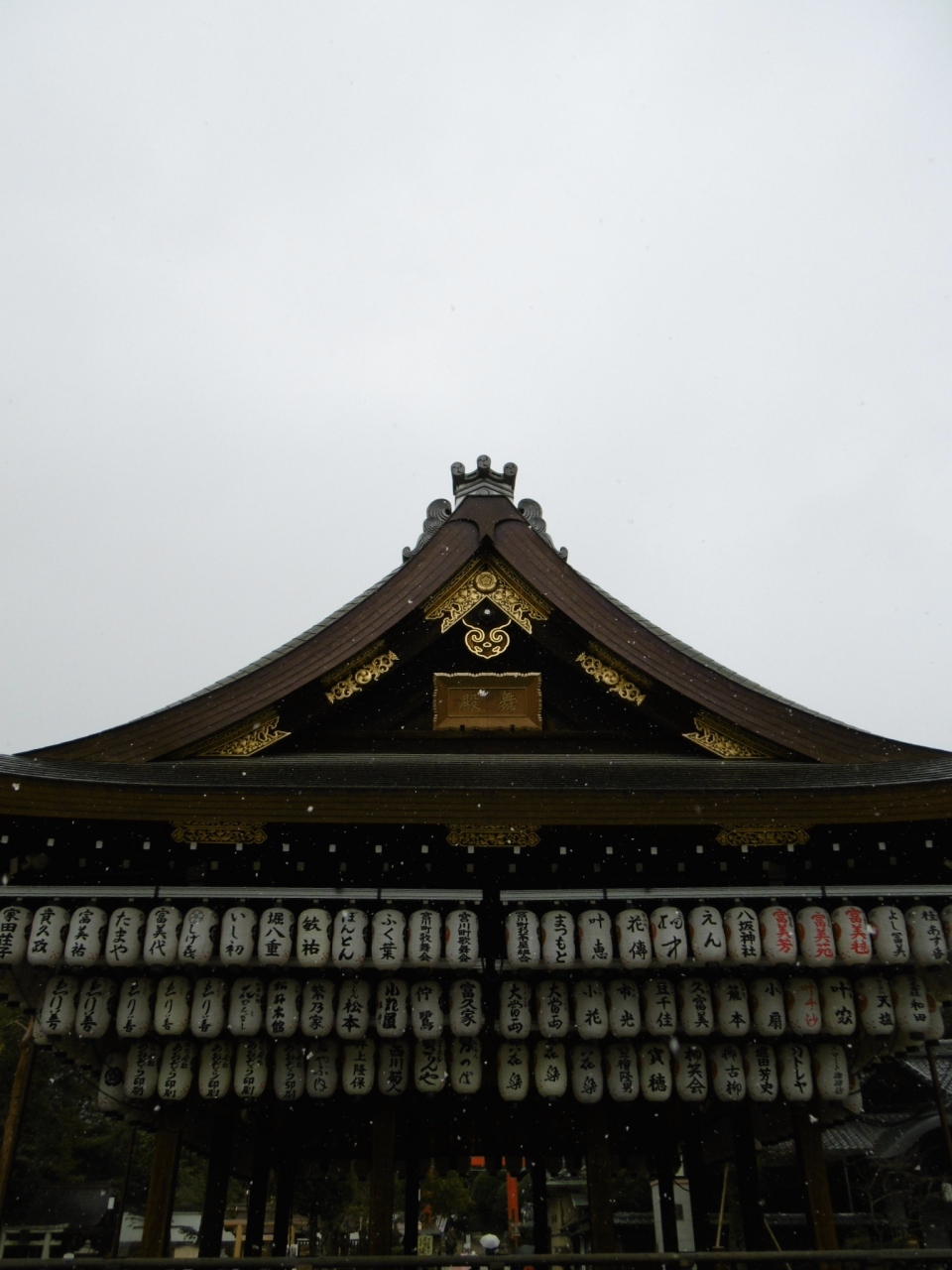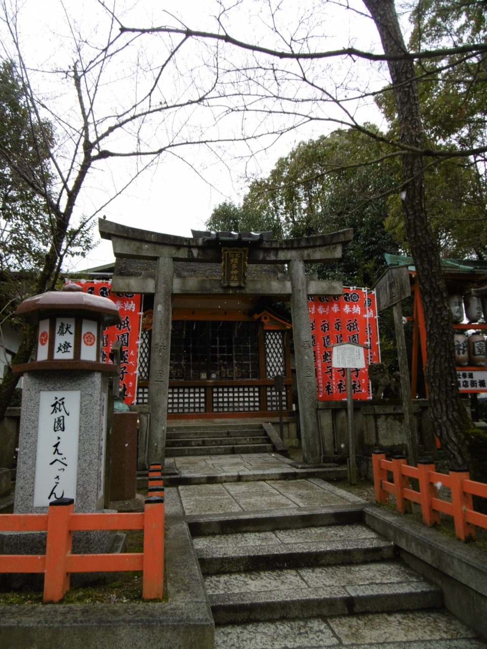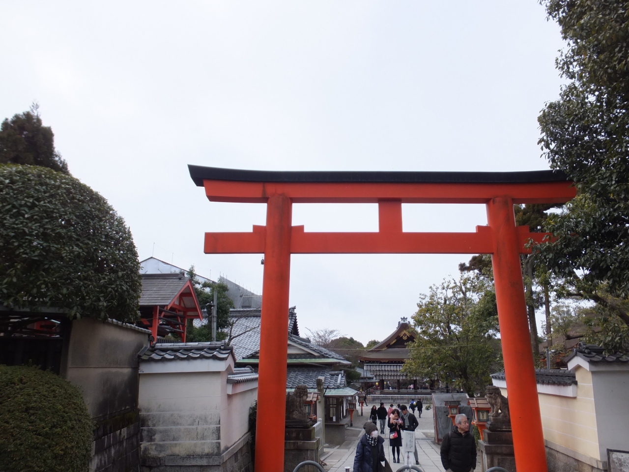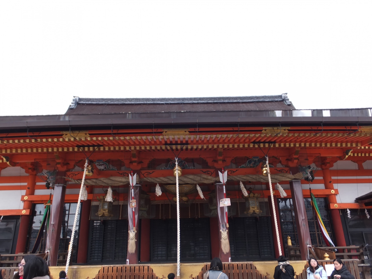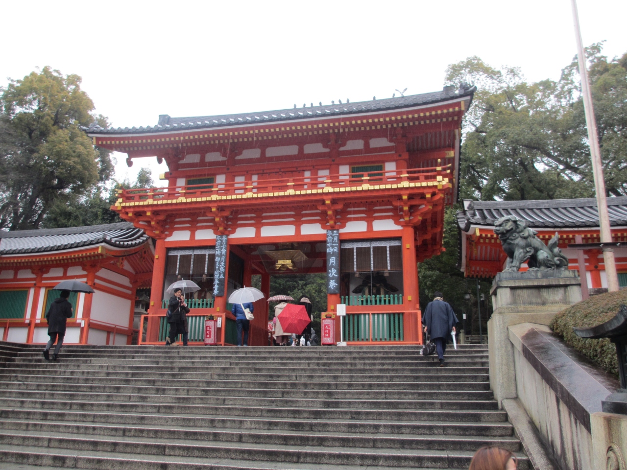 牛頭天王を祀っているようです。 基本的には疫病退散の神社ですが、美人祈願や縁結び、さらには商売繁盛の恵比須様も祀られてい... 続きを読むました。歴史の重みある大絵馬を掲げ、訪れる参拝客を出迎えます。 四条通の突き当りに大きな門がある他、境内南側にも門が据えられていました。円山公園にも隣接しており、多くの人でごった返していました。 閉じる