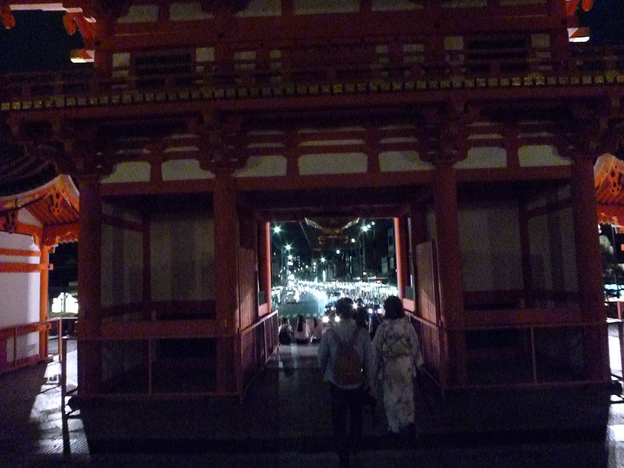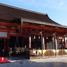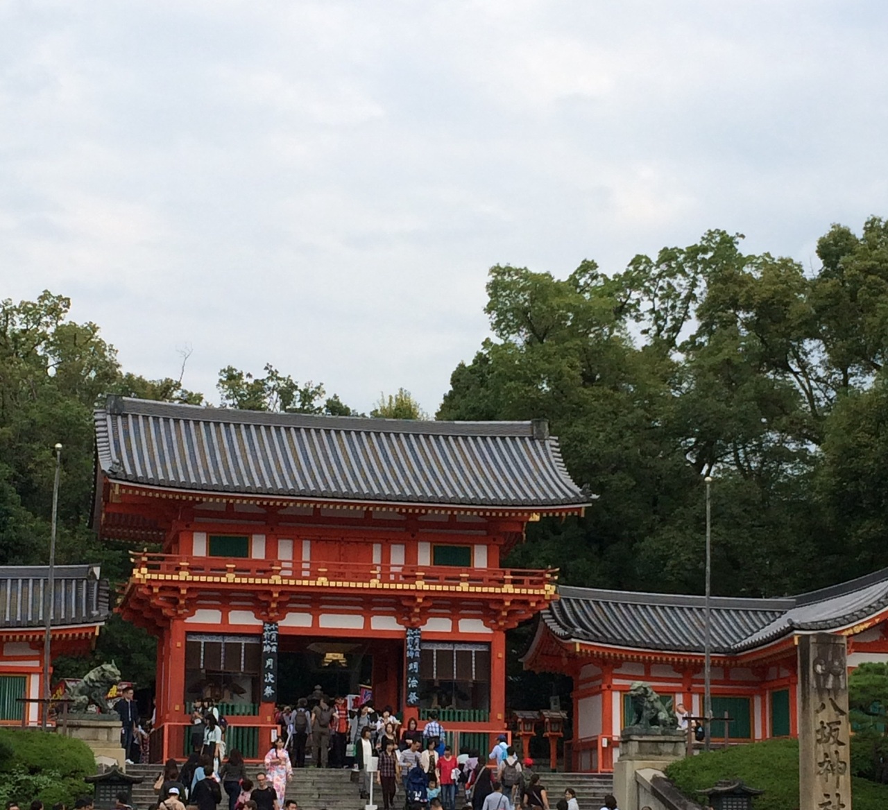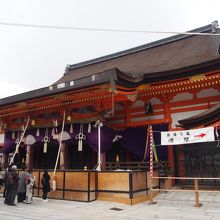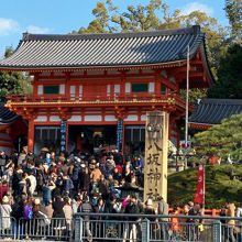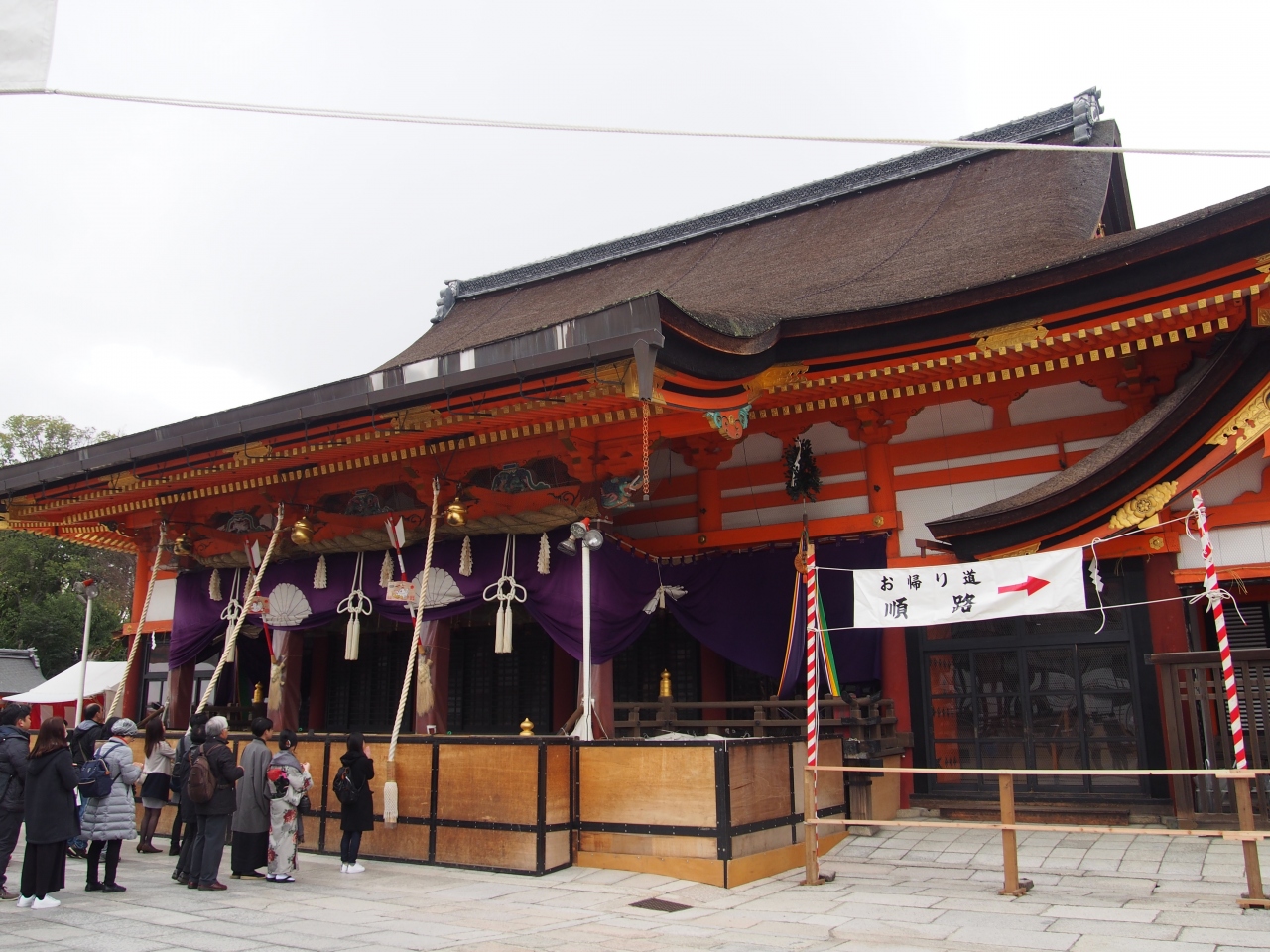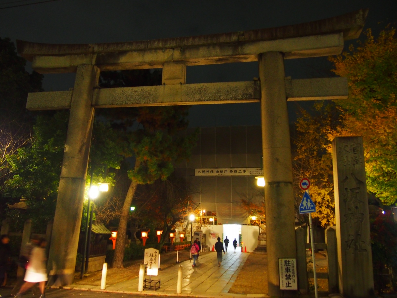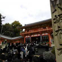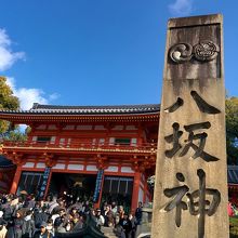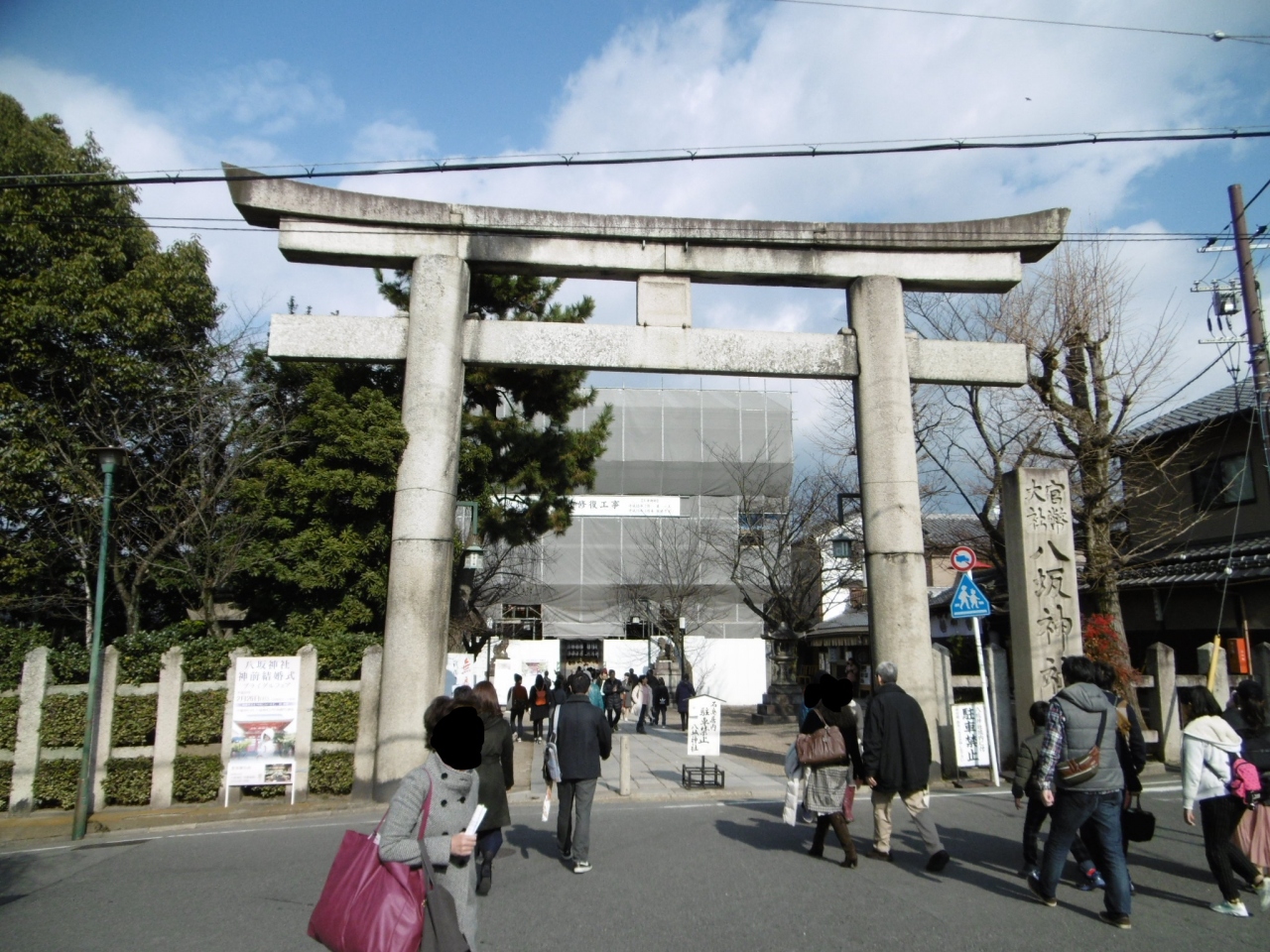牛頭天王を祀っているようです。 基本的には疫病退散の神社ですが、美人祈願や縁結び、さらには商売繁盛の恵比須様も祀られてい... 続きを読むました。歴史の重みある大絵馬を掲げ、訪れる参拝客を出迎えます。 四条通の突き当りに大きな門がある他、境内南側にも門が据えられていました。円山公園にも隣接しており、多くの人でごった返していました。 閉じる