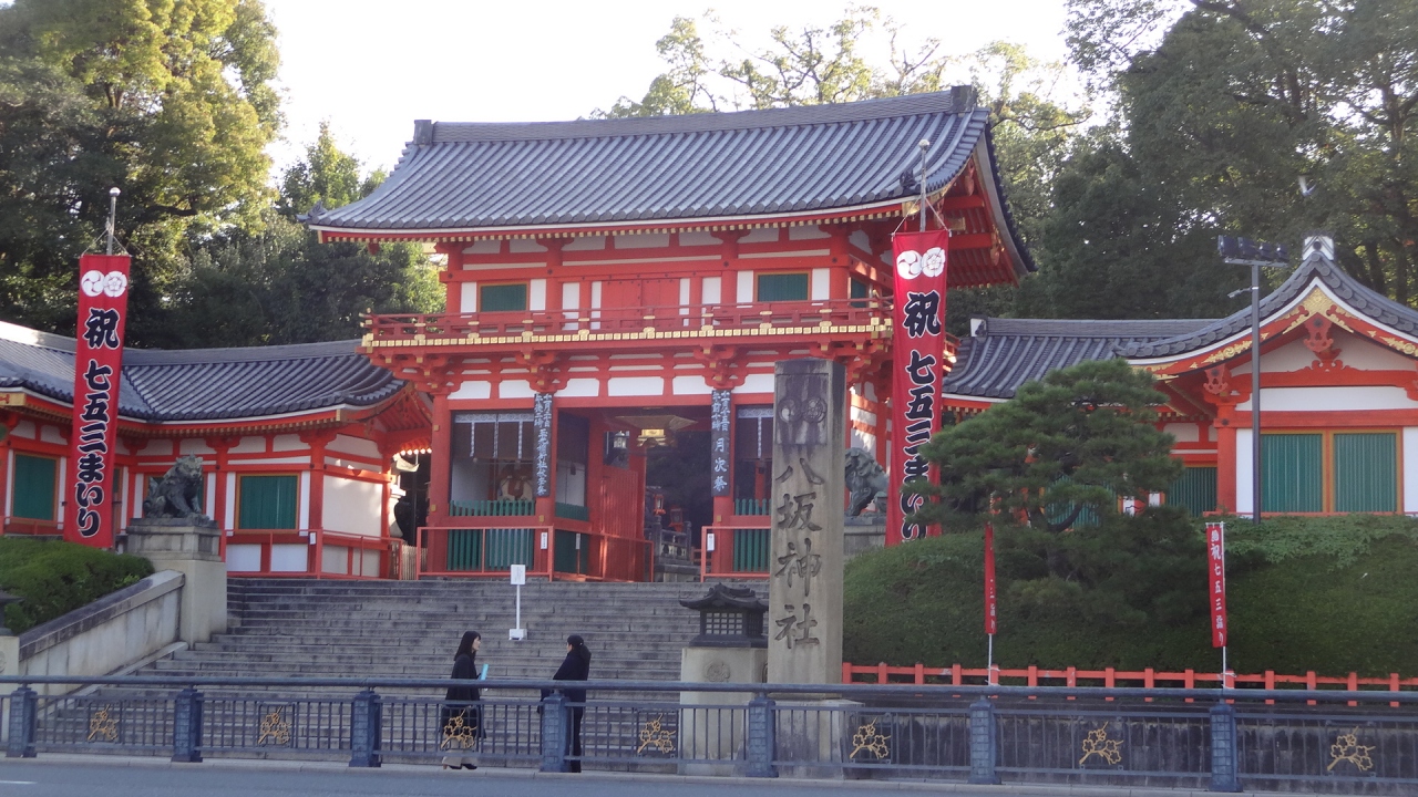 厄除け・縁結びの神、祇園さんの呼び名で親しまれている。日本三大祭のひとつ祇園祭は京都の代表的行事である。師走の風物詩「をけら詣り」も有名。全国の祇園社の総本社。