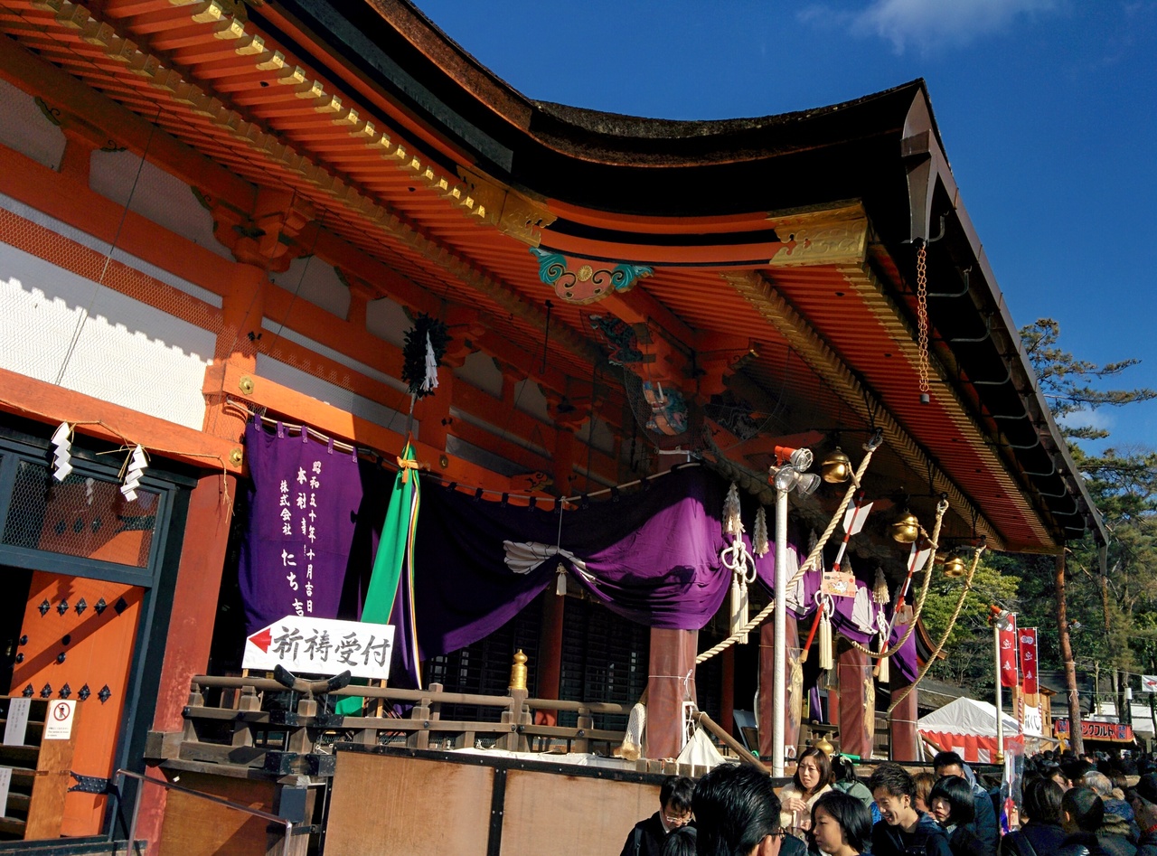 さらに八坂神社境内も「人・人・人」で大混雑していましたが、無事、本殿前に着き、初詣することでき「家内安全・世界平和」を祈り、八坂神社との十分なご縁を深めるため、お賽銭は毎年「15円」としています。