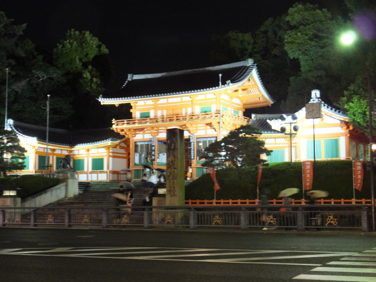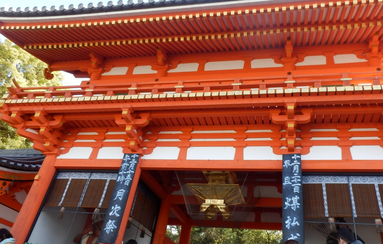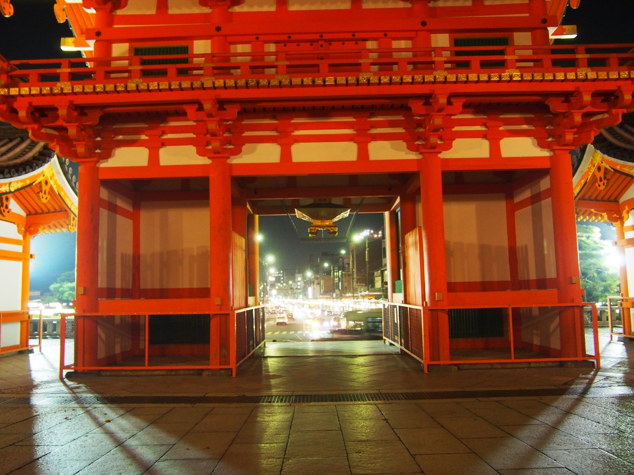 厄除け・縁結びの神、祇園さんの呼び名で親しまれている。日本三大祭のひとつ祇園祭は京都の代表的行事である。師走の風物詩「をけら詣り」も有名。全国の祇園社の総本社。