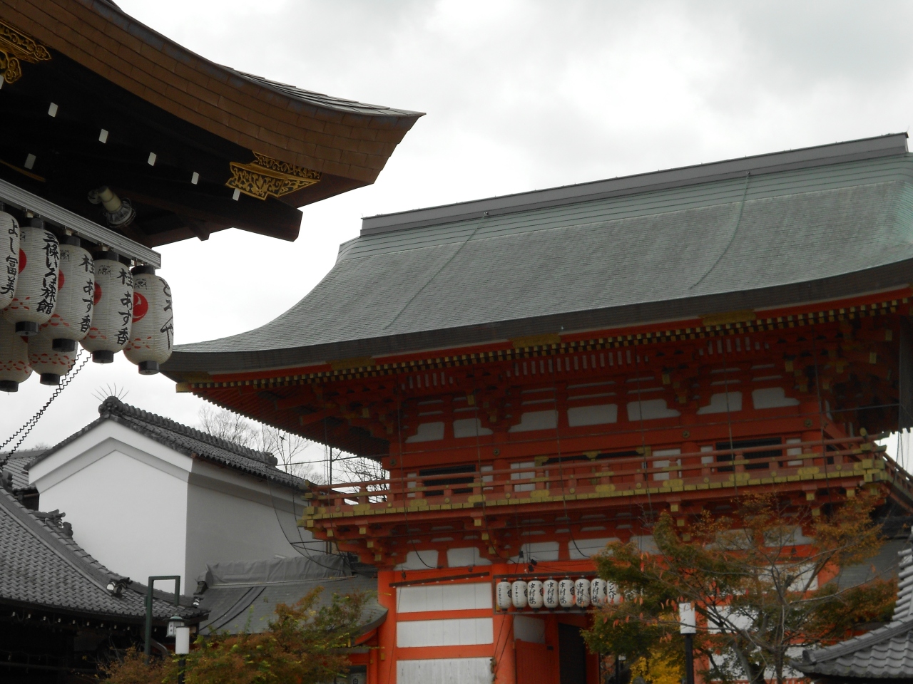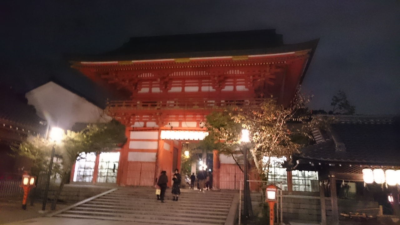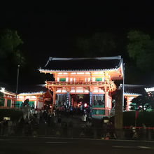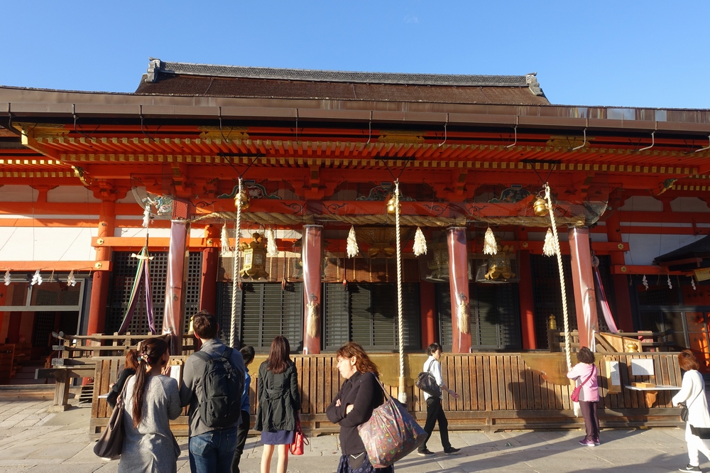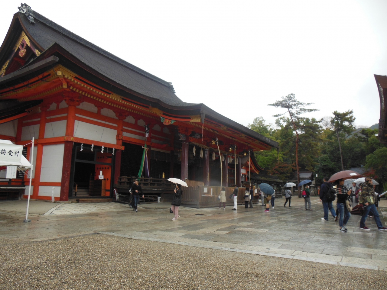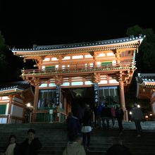 牛頭天王を祀っているようです。 基本的には疫病退散の神社ですが、美人祈願や縁結び、さらには商売繁盛の恵比須様も祀られてい... 続きを読むました。歴史の重みある大絵馬を掲げ、訪れる参拝客を出迎えます。 四条通の突き当りに大きな門がある他、境内南側にも門が据えられていました。円山公園にも隣接しており、多くの人でごった返していました。 閉じる